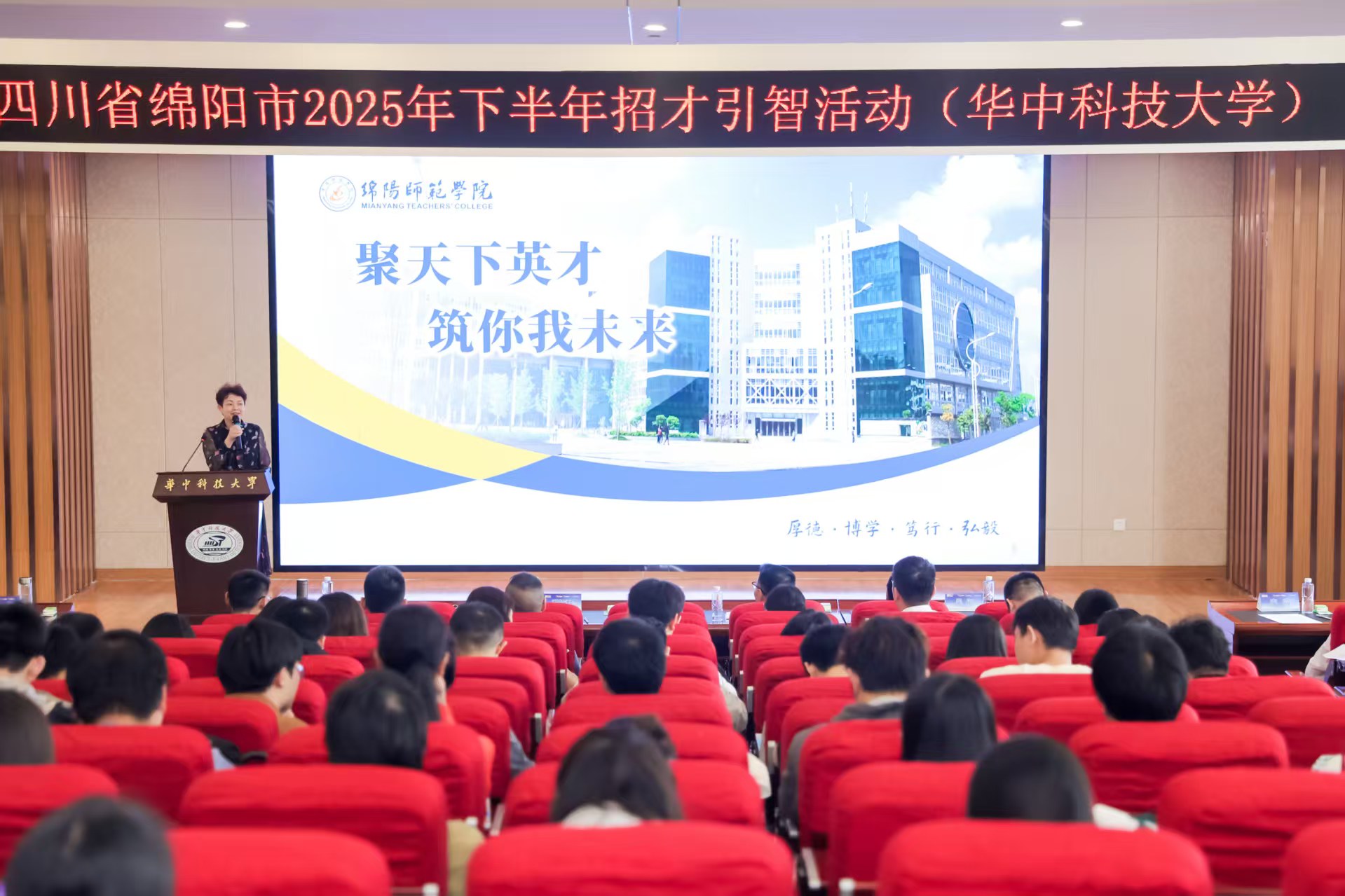 在华中科技大学专场推介会上,罗娅君以“首席推介官”身份代表学校作推介发言。她向青年人才全面地介绍了学校的办学历史、学科特色和校园文化,聚焦青年人才最为关切的发展前景与待遇保障等问题,详细解读引才政策,诚挚邀约有志青年选择绵阳,加盟学校,共谋事业发展。