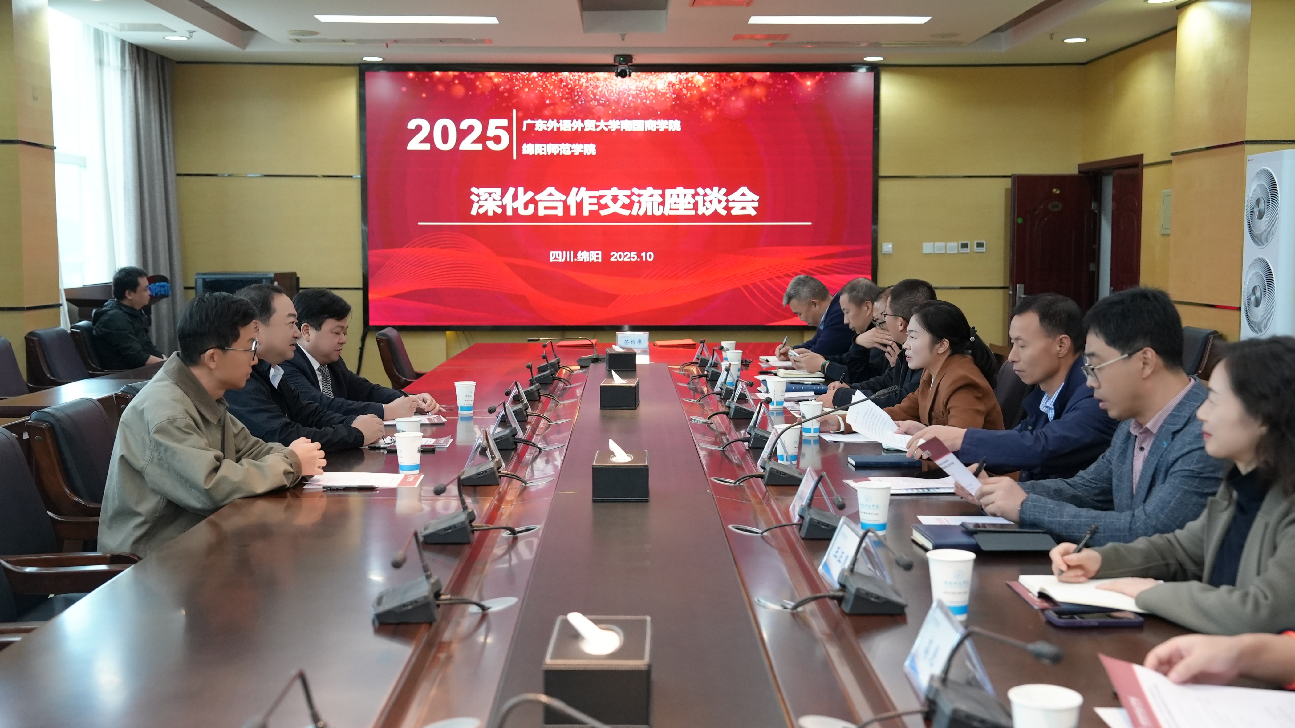 丁小军对我校的热情接待表示感谢。他对广外南国商学院的历史、学科门类、师资情况、办学定位、专业建设、科研情况等逐一作了介绍。他表示,南国商学院高度重视同我校合作项目的开展,尤其是校际学生交流项目开展以来,学生全方位感受了交换院校的特色校园文化。两校有着共同的教育初心,跨地区跨类别合作是双方促进教育事业高质量发展的有益尝试。他进一步表示,广外南国商学院愿以此次续签为契机,深入推进双方的合作,期待两校在人才培养、科研协同、资源共享等领域深度融合,打造校际合作标杆。