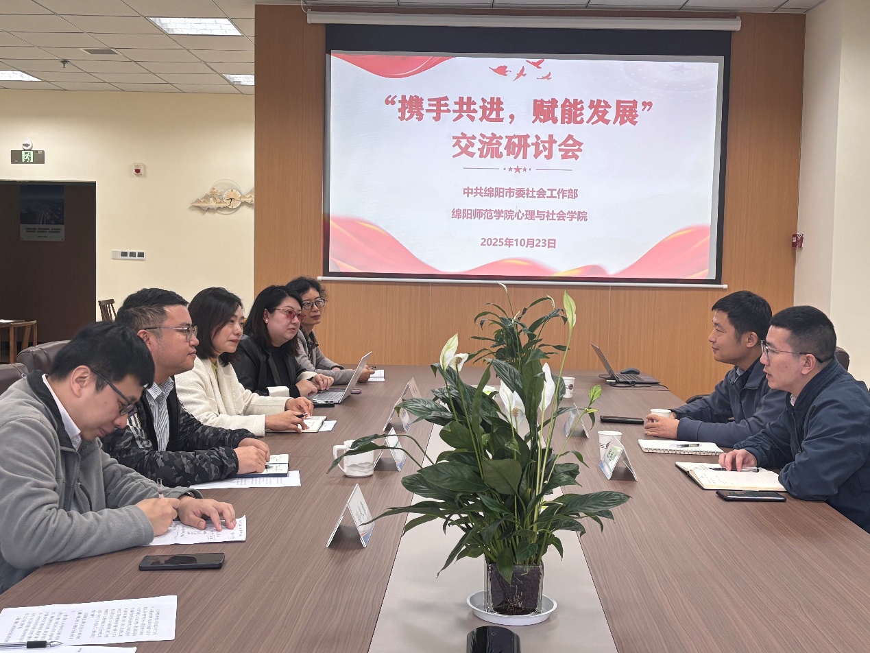 为深入学习贯彻党的二十届三中、四中全会精神和习近平总书记关于社会工作的重要论述,充分发挥高校学科优势与人才培养功能,推动社会工作理论研究与实务应用深度融合,10月23日下午,学校心理与社会学院与中共绵阳市委社会工作部在活动中心304会议室举办“携手共进 赋能发展”交流研讨会,并正式挂牌共建“绵阳市领域社会工作融合发展研究院”。中共绵阳市委社会工作部副部长杨宇、四科科长陈振宇莅临活动现场,心理与社会学院党委负责人及全体社工专任教师参会。会议由社会工作系负责人主持。