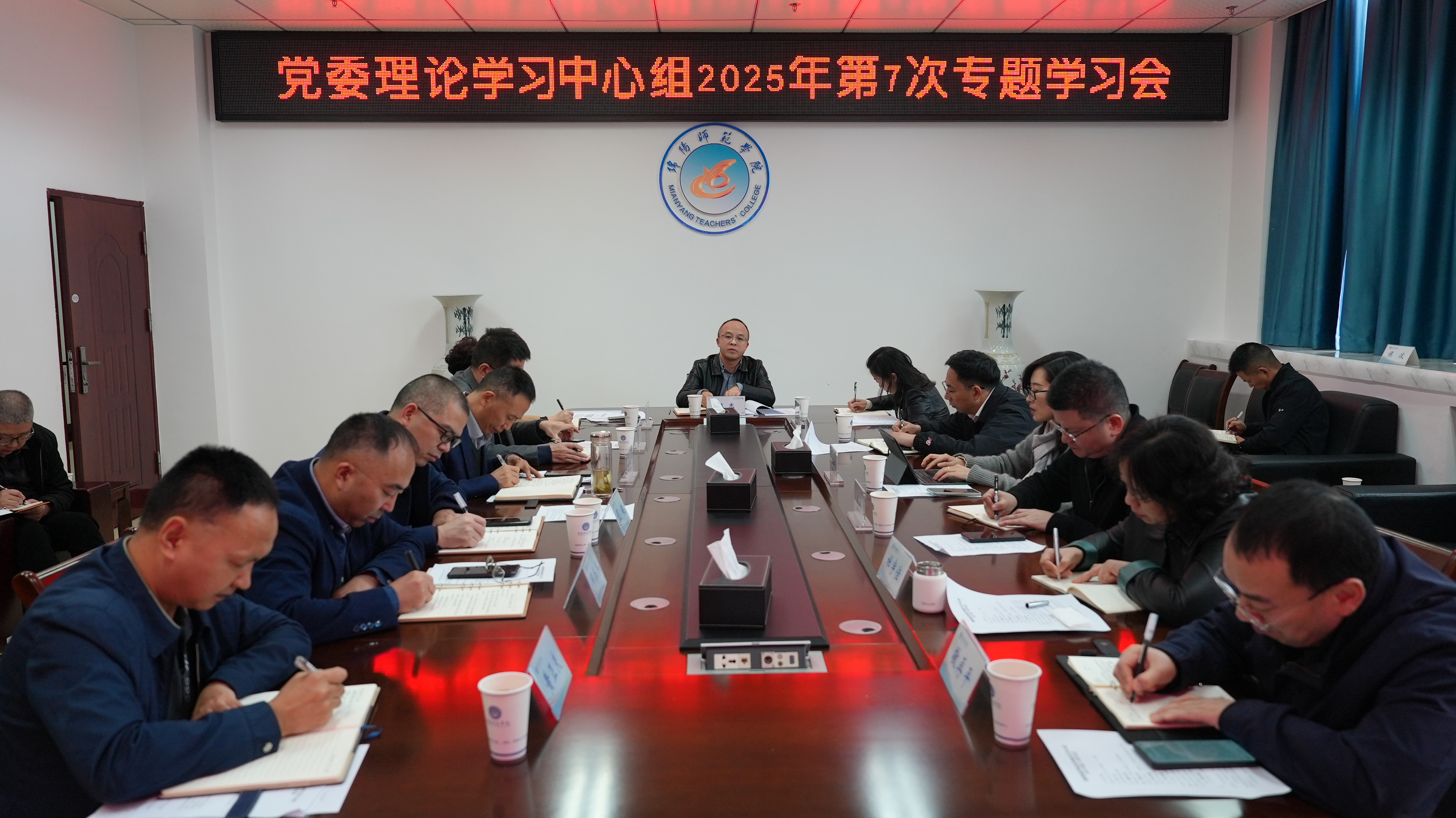 11月3日,学校召开党委理论学习中心组2025年第7次学习(扩大)会,深入学习领会党的二十届四中全会精神,《中国共产党思想政治工作条例》以及省委关于统战工作的最新工作要求等。学校党委书记陈寒主持学习会。