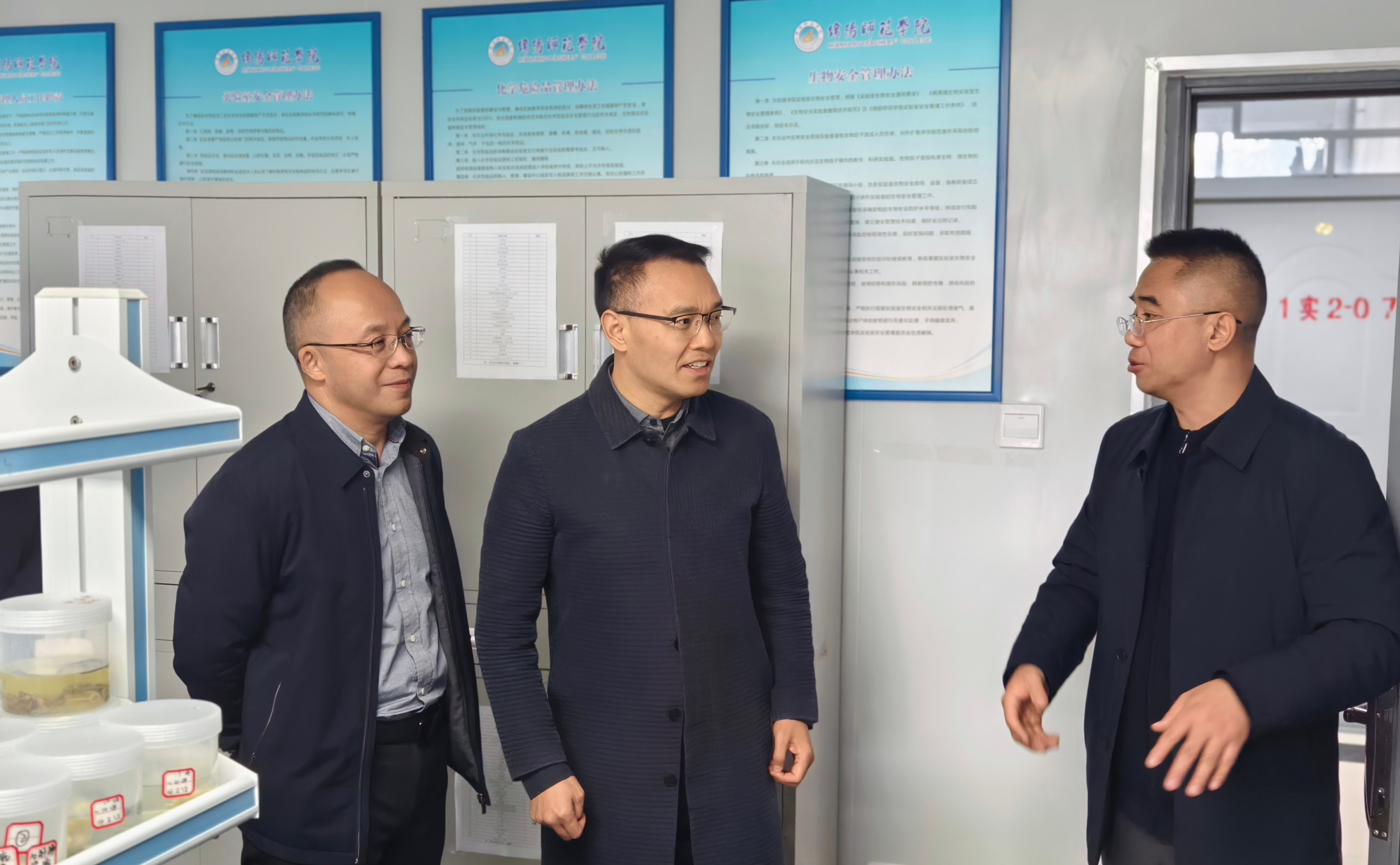 熊文琦先后前往四川省高校工程研究中心——四川生猪重大疫病监测与防控工程研究中心,四川省社会科学重点研究基地——四川民间文化研究中心、四川李白文化研究中心,详细了解学校服务绵阳市重点产业建圈强链“587⁺”产业体系,开展地方文化研究服务文旅融合发展,以及人才引育、科研攻关与成果转化、党组织建设等有关情况。