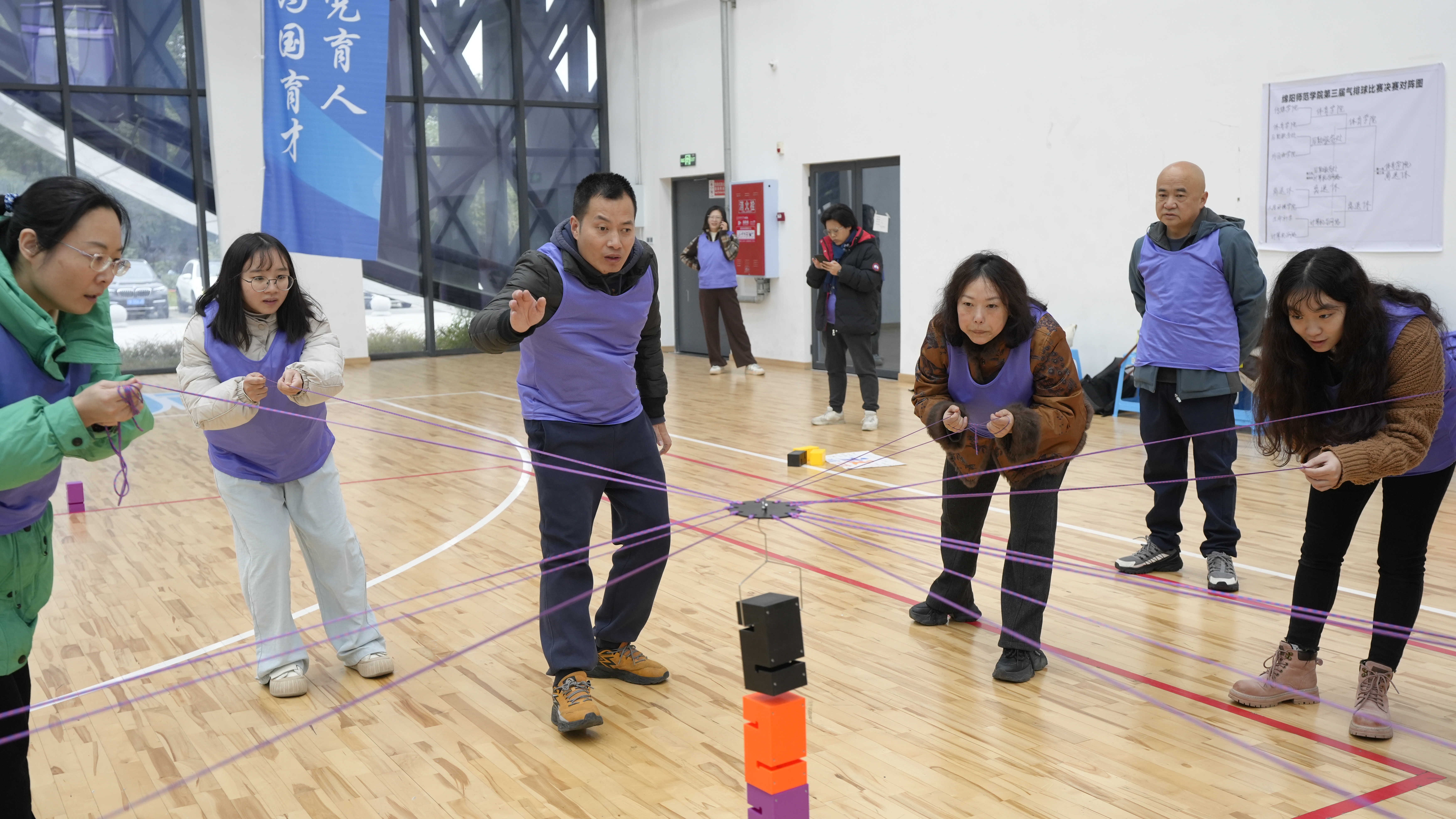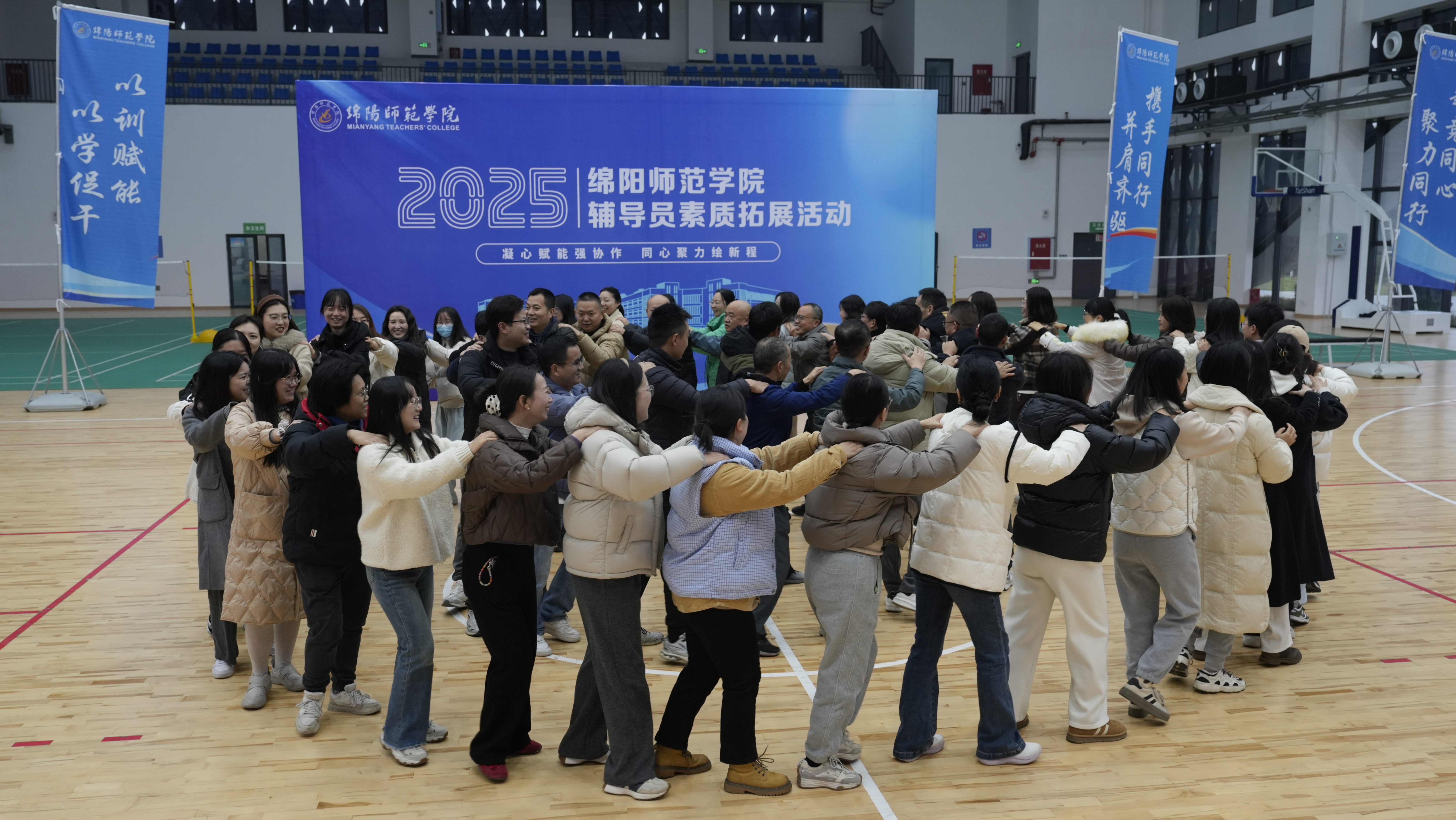 26日上午全体辅导员在高新校区室内篮球馆开展团队素质拓展训练,辅导员们在教练的带领下,参加了融冰热身、破冰启航、合力筑塔、鼓动人心、机智抓手等一系列精心设计的拓展项目,有效提升了团队意识和综合素养,也为日常工作注入了新的活力。