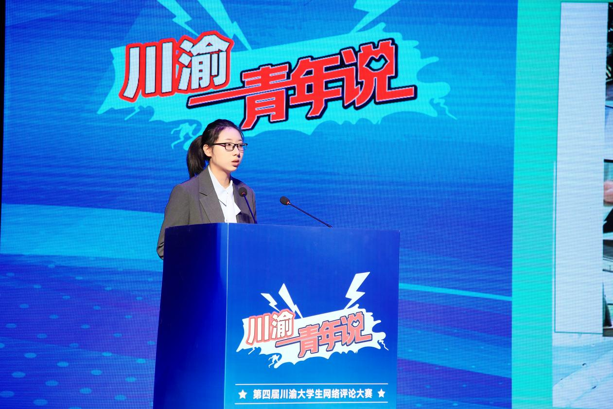 12月17日,由重庆市委网信办、四川省委网信办、重庆市委教育工委、四川省委教育工委、共青团重庆市委、共青团四川省委联合主办的“川渝青年说”第四届川渝大学生网络评论大赛颁奖仪式在成都大学举行。学校传媒学院2024级学生陈诗雨作为获奖选手代表在颁奖仪式上发言,交流创作心得。