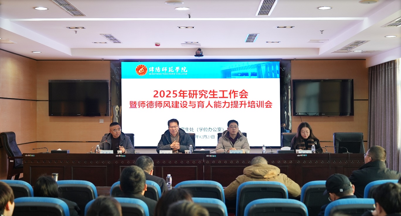 为深入贯彻落实习近平总书记关于教育的重要论述及全国研究生教育会议精神,全面加强学校研究生导师队伍建设,着力提升导师队伍的师德素养和育人能力,落实立德树人根本任务,学校于12月23日在知行楼613会议室召开“2025年研究生工作会暨师德师风建设与育人能力提升培训会”。副校长何云晓出席会议并讲话,研究生处负责人主持会议。各二级教学单位院长、全体硕士研究生导师、研究生处相关人员参加会议。