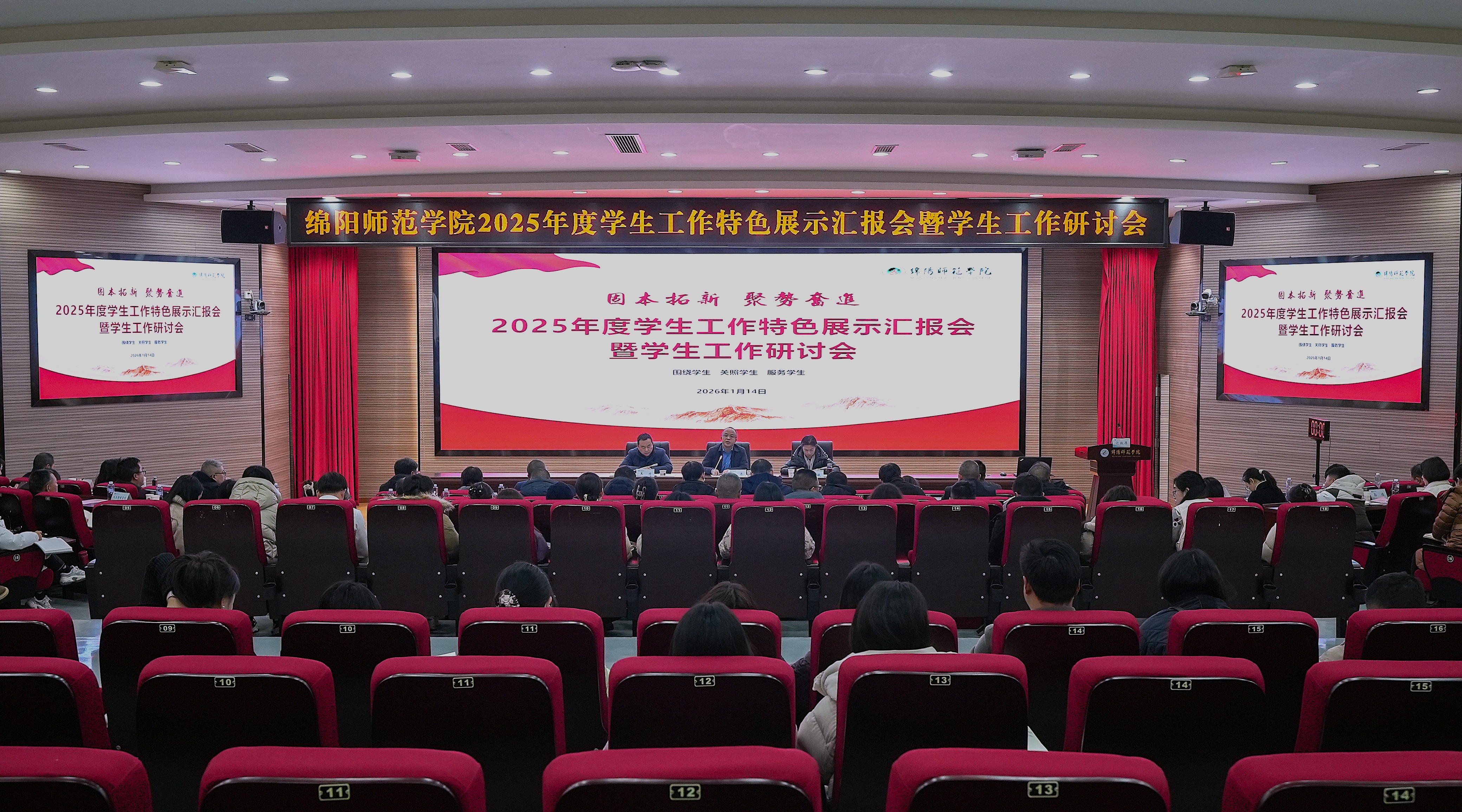 1月14日,学校举办2025年度学生工作特色展示汇报会暨研讨会,围绕“固本拓新、聚势奋进”主题,总结年度工作、交流特色经验、谋划发展新篇。校党委书记陈寒、校长李敏出席会议并讲话,副校长王力主持会议。