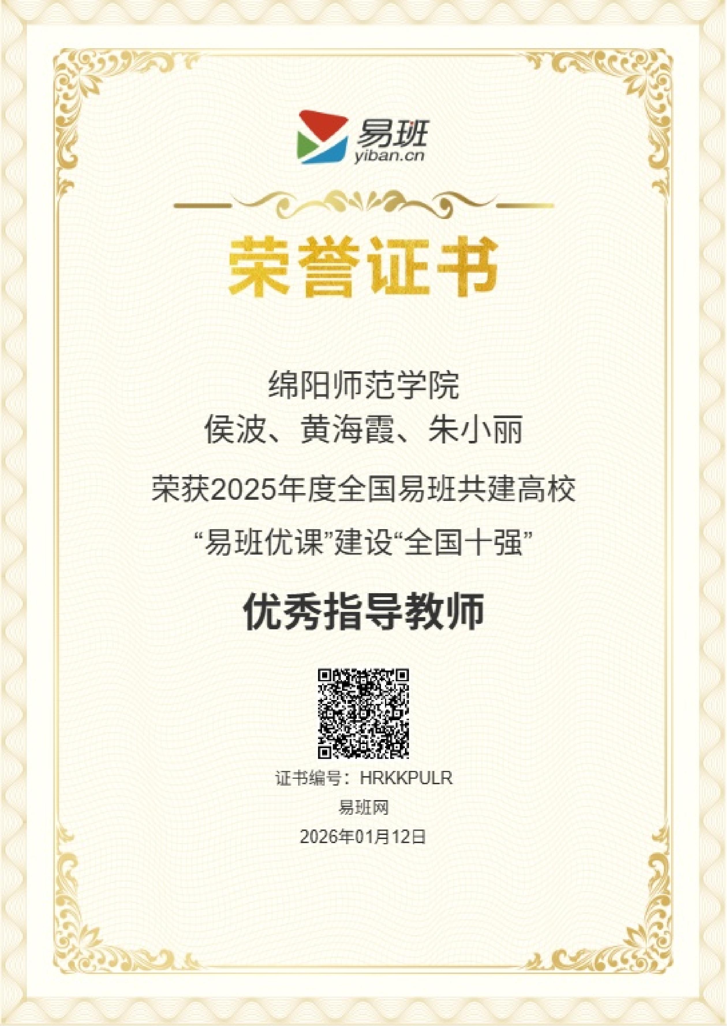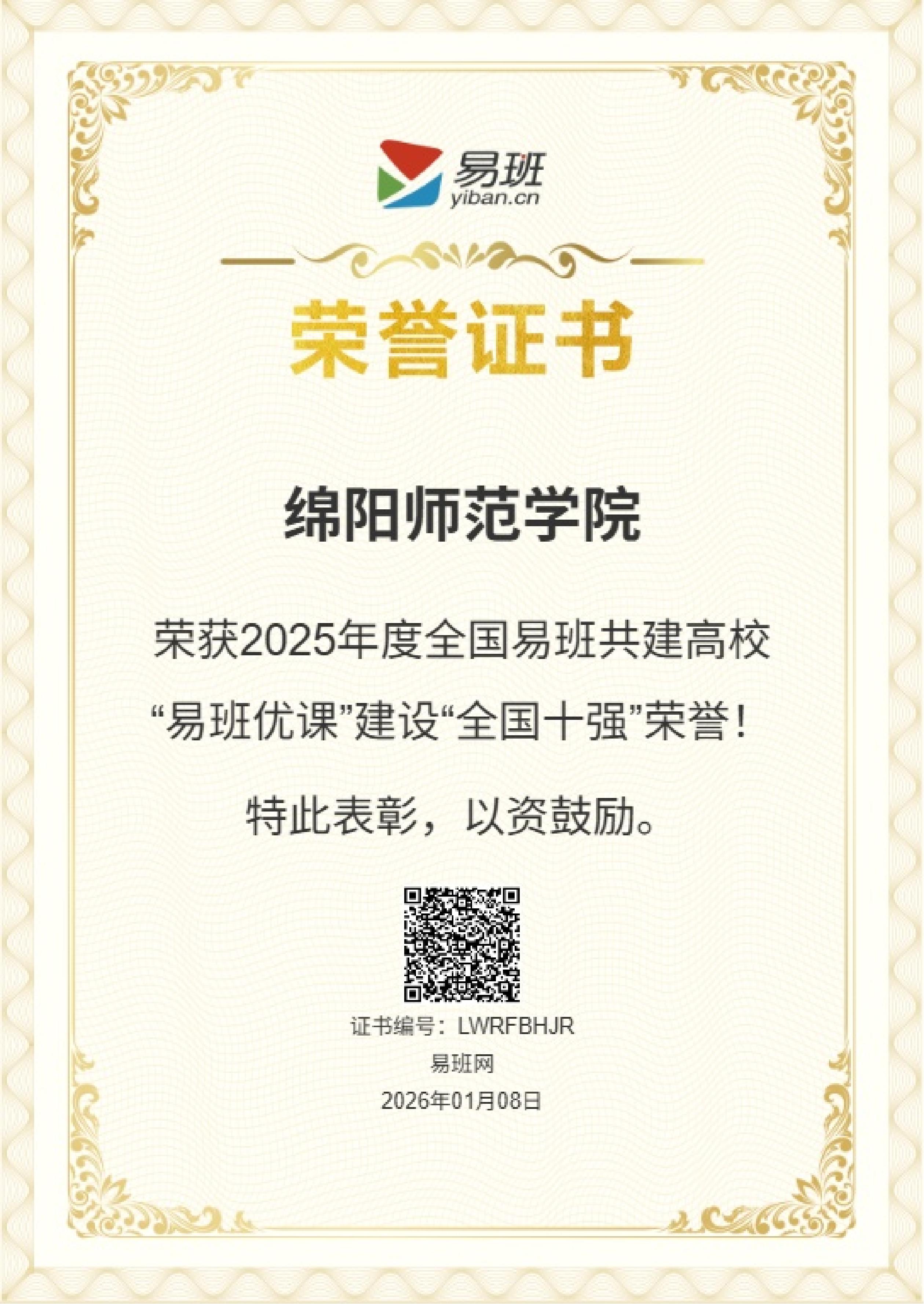 近日,教育部易班发展中心公布全国易班共建高校“易班优课”建设评选结果。学校荣获2025年度全国易班共建高校“易班优课”建设“全国十强”荣誉,侯波、黄海霞、朱小丽荣获易班优课建设“全国十强”优秀指导教师,邹梦莎等5位同学荣获易班优课建设“优秀学生干部”,涂艺等3位同学荣获易班优课建设“优秀学生骨干”荣誉称号。