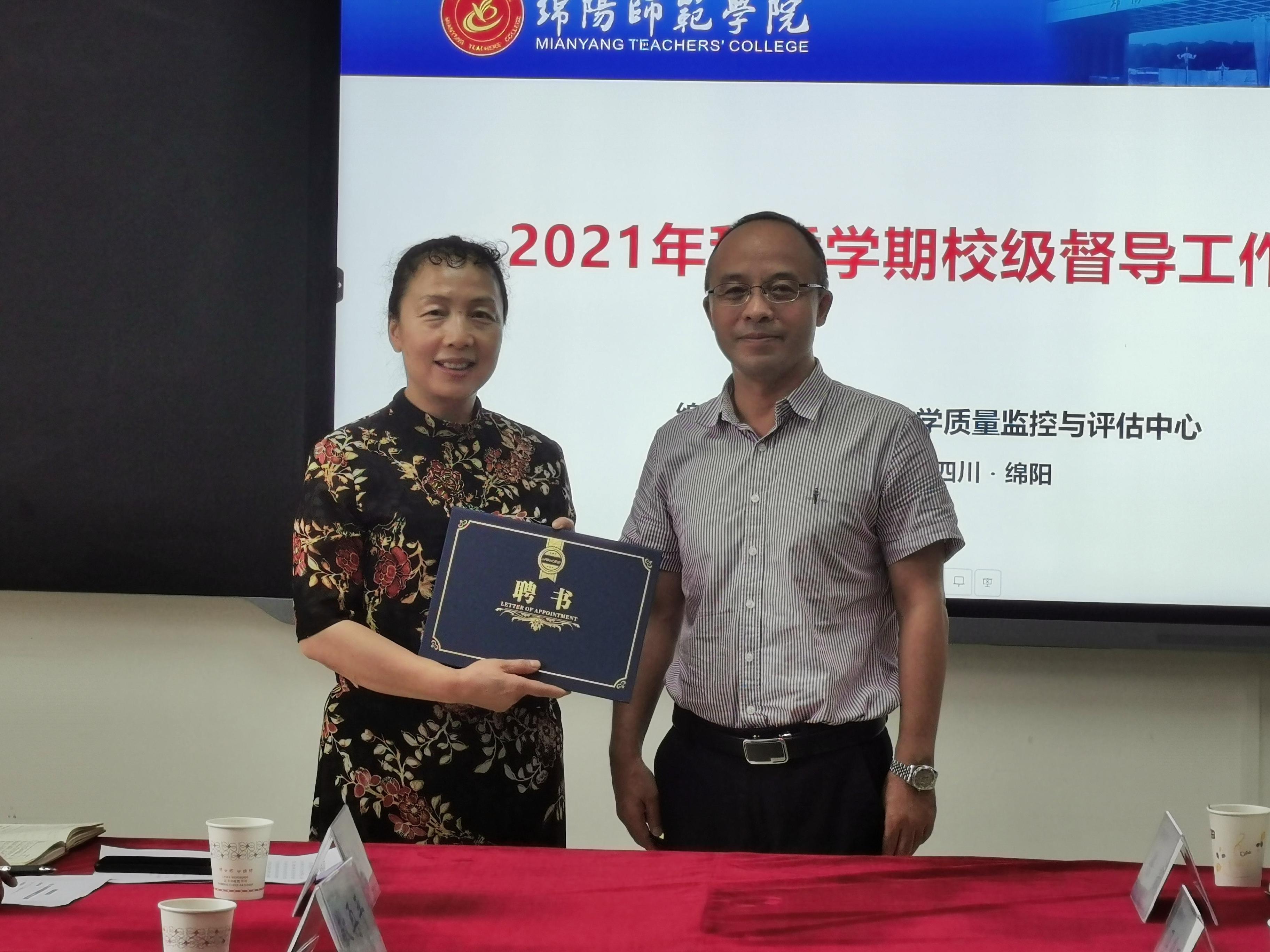 会上,副校长陈寒为新聘校级教学督导员颁发聘书,感谢对我校教学督导工作的大力支持。