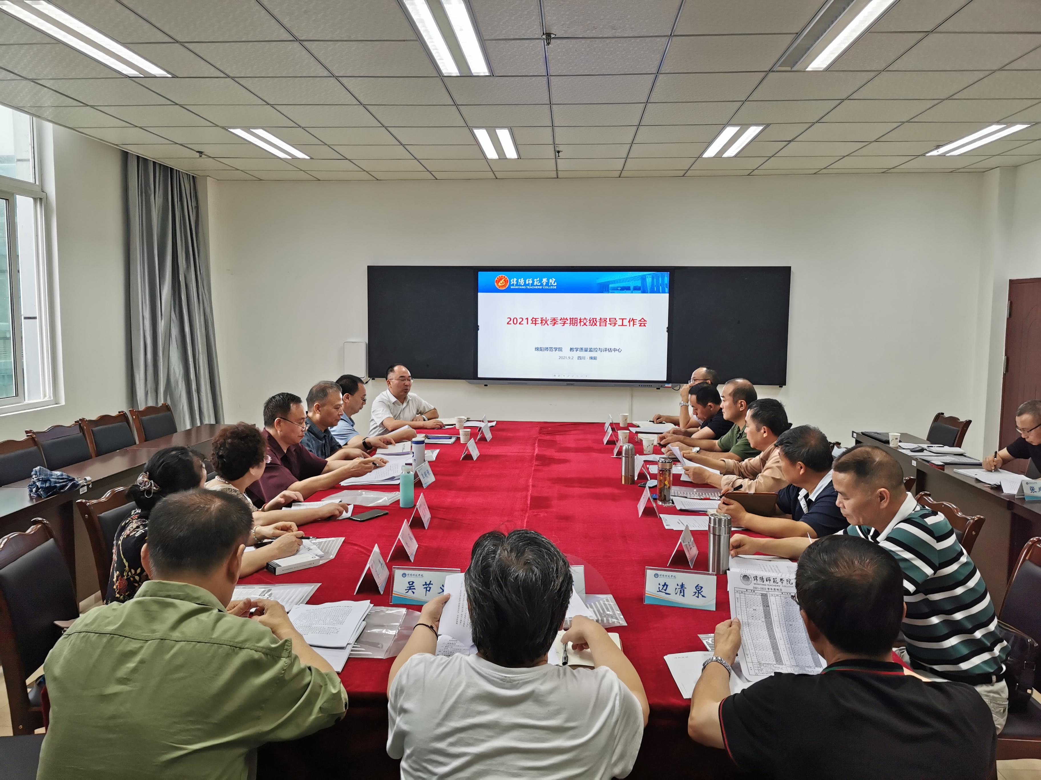 为贯彻落实教育部《关于深化新时代教育督导体制机制改革的意见》,推进学校教学督导工作,9月2日,学校在高新校区知行楼635会议室召开2021年秋季学期校级督导工作会议。副校长陈寒出席会议并讲话,全体校级督导、教务处、人事处、教师发展中心、质评中心主要负责人及相关人员参加会议。会议由教务处处长、教学质量监控与评估中心主任邹洪伟主持。