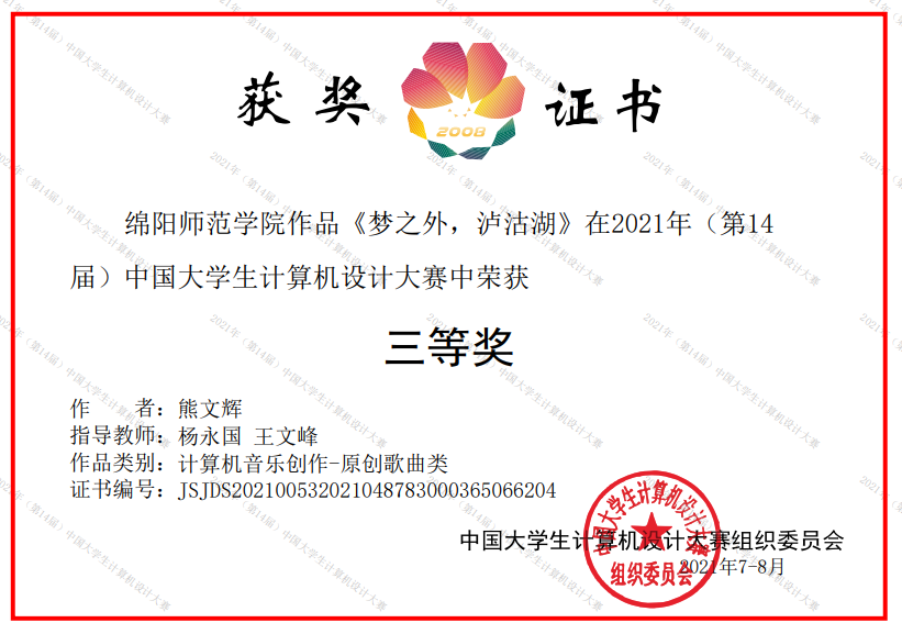 据悉,2021年(第14届)中国大学生计算机设计大赛由中国大学生计算机设计大赛组织委员会主办,决赛由杭州电子科技大学、浙江音乐学院承办,大赛围绕计算机为中心,分设软件应用与开发、微课与教学辅助、物联网应用、大数据应用、人工智能应用、信息可视化设计、数媒静态设计、计算机音乐创作等14个类别。本次大赛共有来自同济大学、武汉大学等全国340多所院校的827支参赛队伍,2100余名选手的1万余件作品参与奖项角逐。经过校级初赛、省级复赛筛选,6月中旬共计4900多件作品入围国赛,因疫情原因,国赛决赛在线上举行,400多名评审专家以线上网评与参赛选手视频答辩的形式展开评审。2021年是我校第二次组队参加中国大学生计算机设计大赛,在获得佳绩提升学校和音乐学院知名度美誉度的同时,对于培养学生的实践能力、创新能力、竞争意识和团队精神,推动教育教学改革、提高教学质量、提升办学实力具有重要意义。