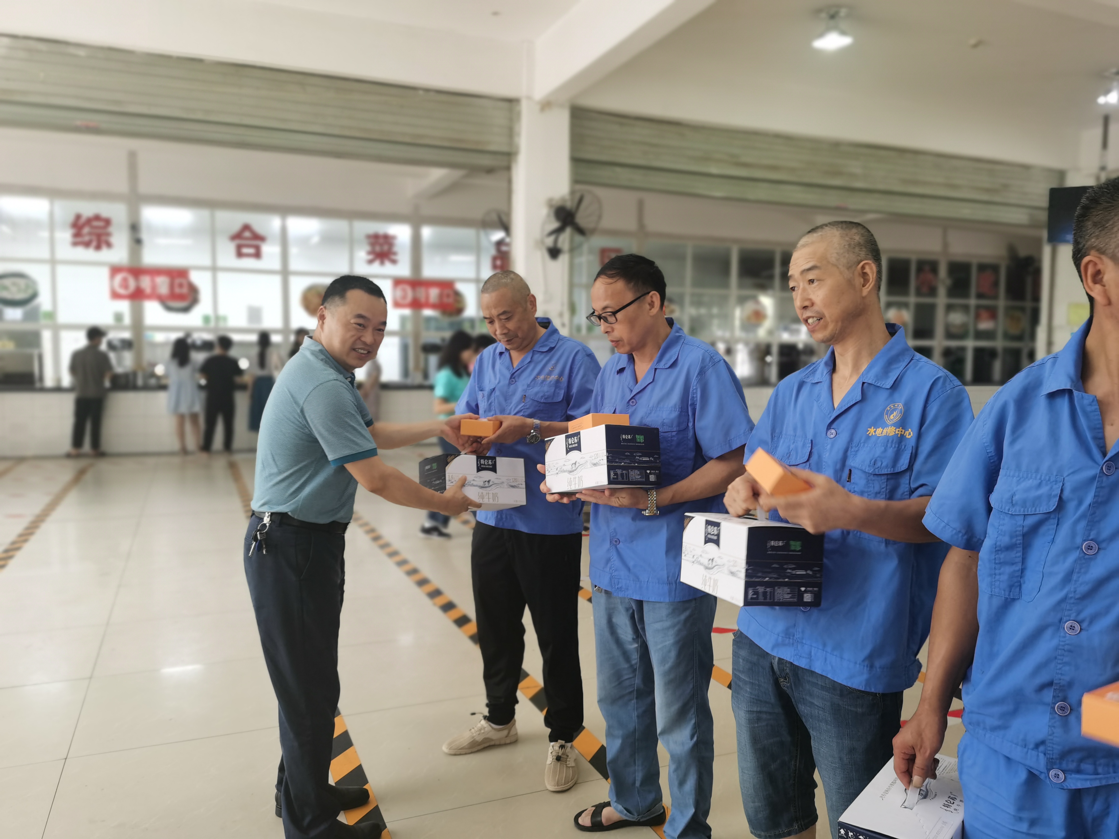 烈日炎炎,酷热难耐,但总有那么一群人,不畏烈日骄阳,坚守岗位,挥汗如雨,用责任和担当守护绵师。为进一步深化“我为群众办实事”实践活动,受学校党委和上级工会的委托,党委书记王海滨、副校长王力率队校工会、机关党委党员志愿者服务队组织开展了“关爱教职工 夏日送清凉”活动,为高温下坚守岗位教职工们送去丝丝清凉。