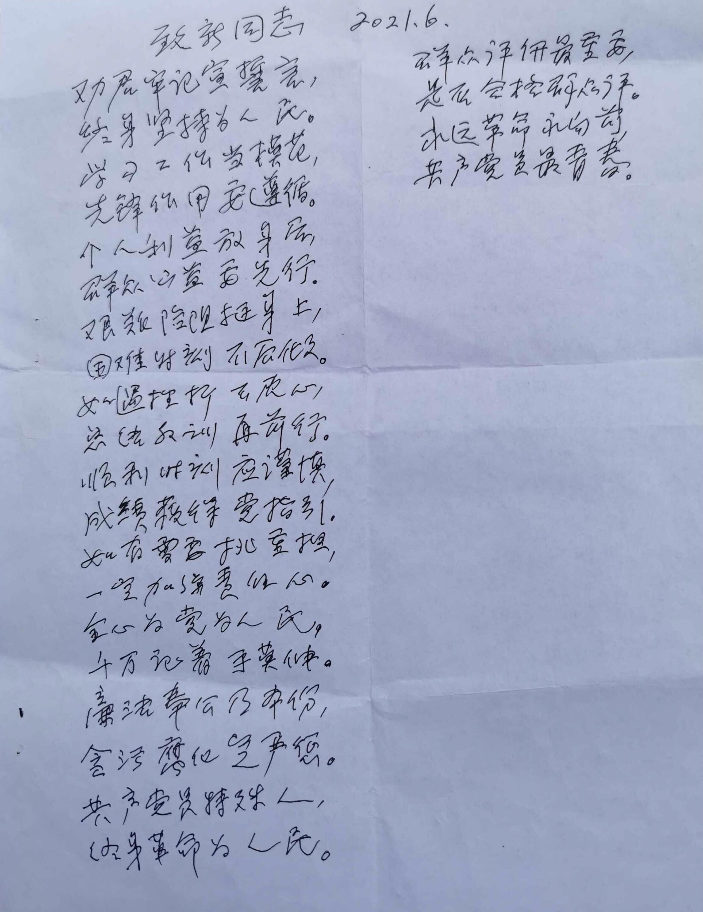 附2:建国前入党的老干部邓志明同志对学校及全体师生的寄语: