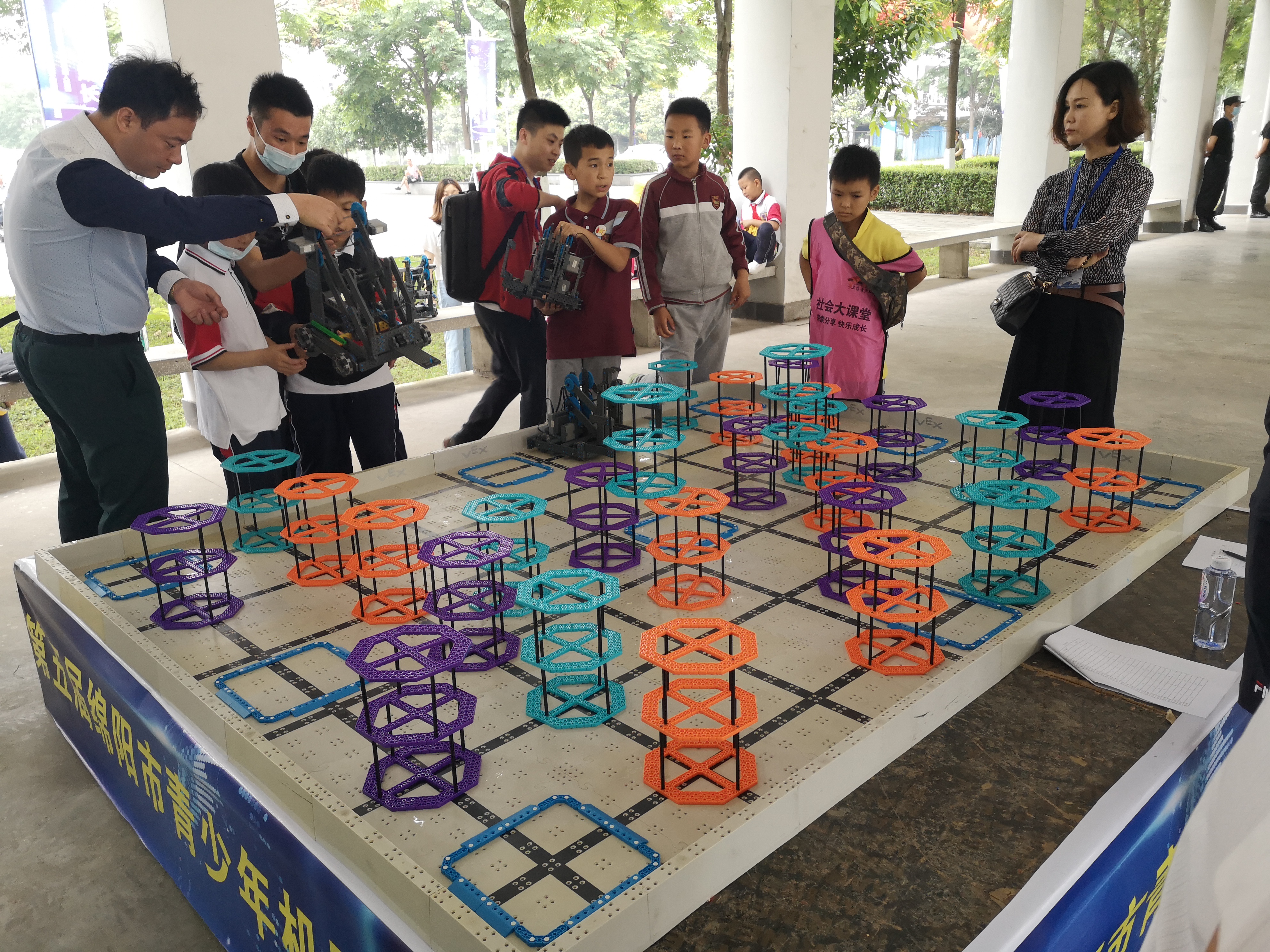 科技兴则国兴,少年强则国强。培养具有创新精神和创新实践能力的青年一代,关系到中华民族伟大复兴事业的成败。而“机器人竞赛”及“青少年科技创新大赛”已成为中小学开展“创新教育”及“创新人才培养”的两大重要抓手。比赛现场,在编程无人机项目场地,现场编程调试完毕的无人机缓缓起飞,精准完成绕杆穿圈穿、自动升降,最后定点降落;智能机器人推箱项目的现场,参赛者手持超控器,专注地操控机器人将箱子推进规定区域。VEXIQ挑战项目、FLL Challenge等项目同步进行,现场气氛紧张,参赛项目激烈精彩,参赛选手尽展才华,上演了一场“科技大战”。这些富有挑战性的比赛项目,旨在让学生将课程中的多学科知识和技能融入竞赛过程中,相互学习,相互借鉴,共同体验科技世界的无穷奥秘,激发青少年对科学的兴趣,培养创新精神和动手实践能力,提高科学素养,形成“学科学、爱科学、用科学”的良好风尚。