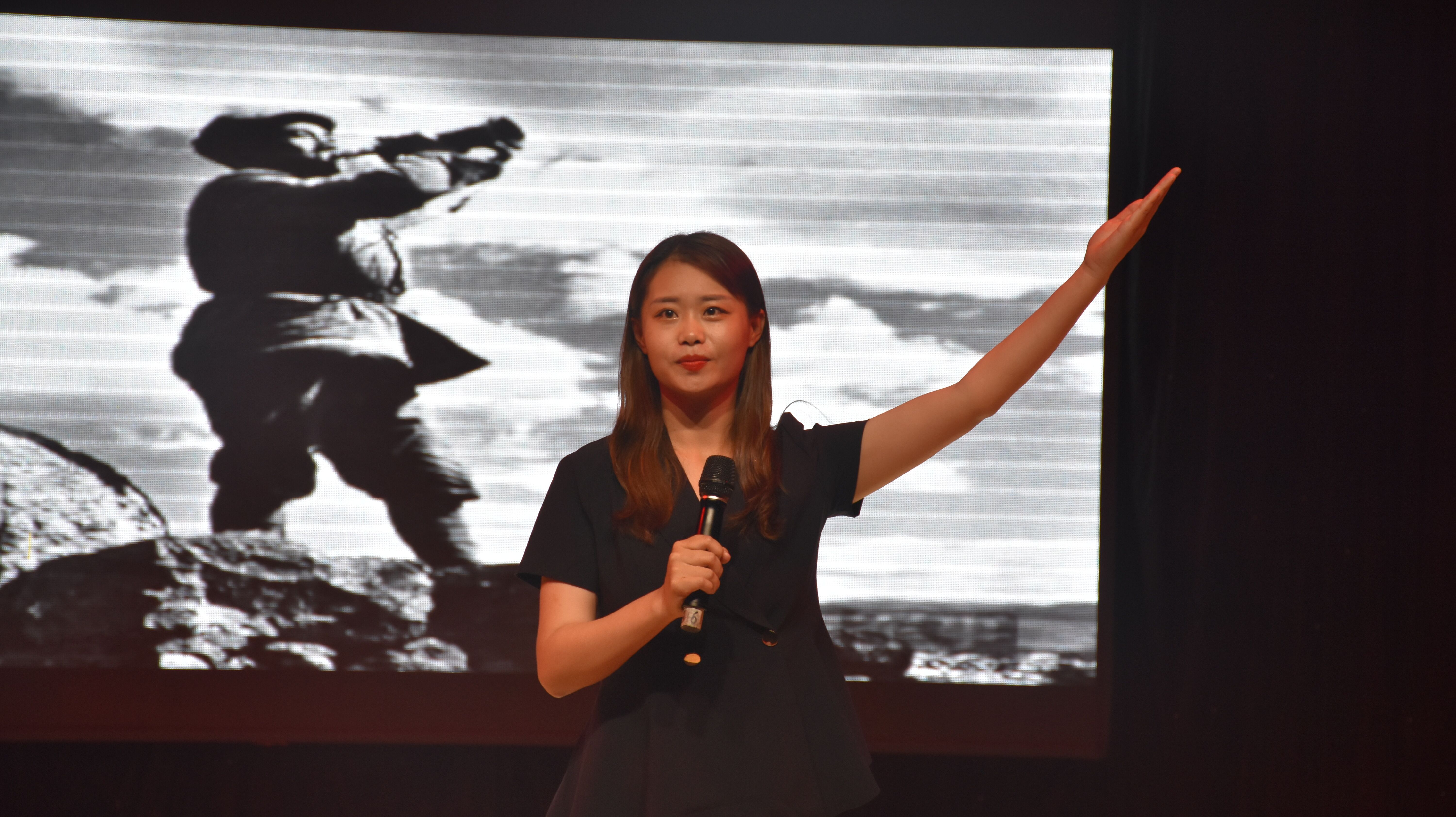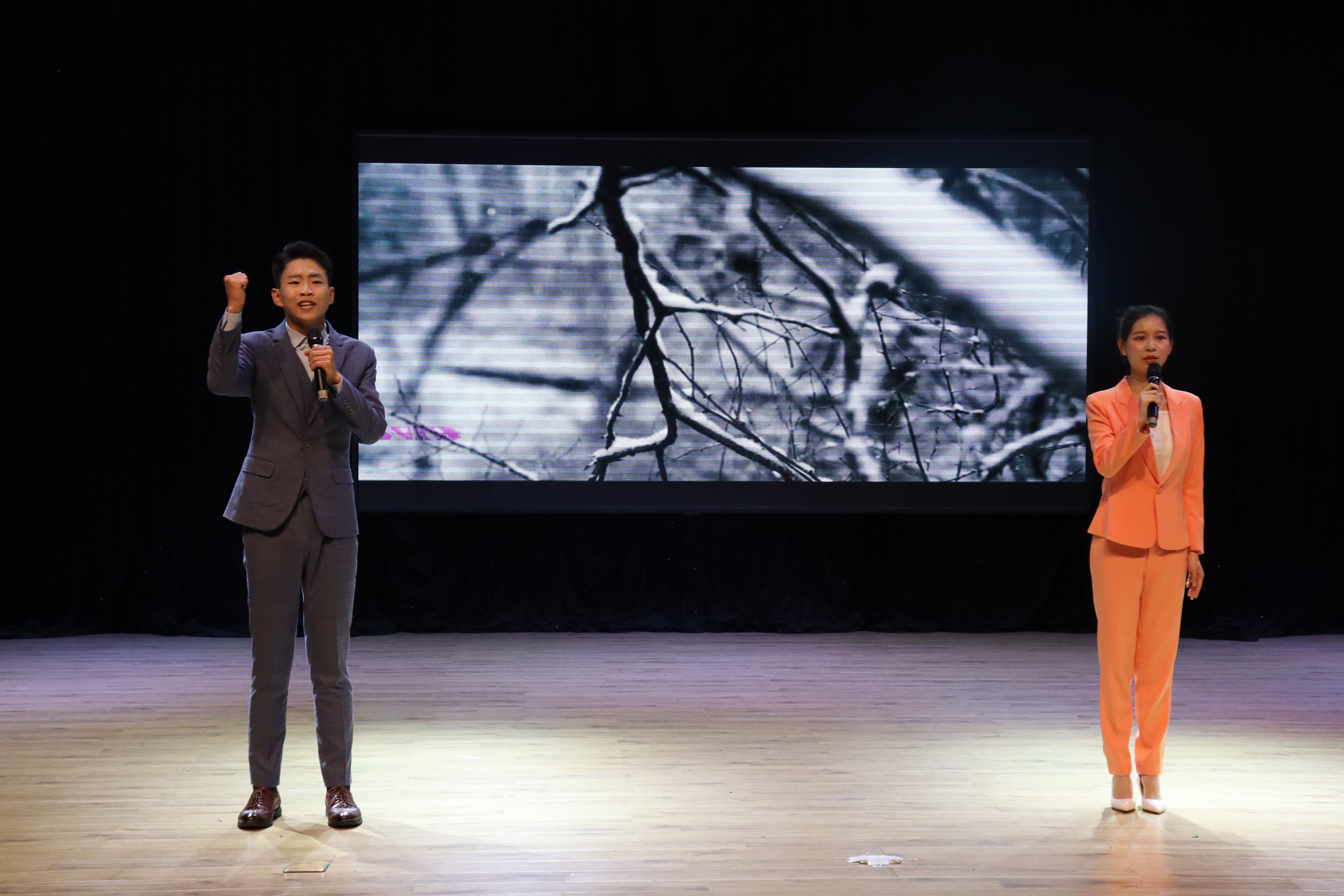 歌曲建党百年版的《少年》,将现场带入到中国百年发展的历程中,回首往事,感慨万千。比赛中,《沁园春·长沙》慷慨激昂,《铁骨军魂》讲述出红军长征精神,《青春中国》歌颂了新时代......参赛选手用自己的方式展现出对党、对祖国的深切热爱。《光的赞歌》中那句“人类的前途无限光明、永远光明”,讲述出中国共产党永远象征着光明和希望,照亮我们前进的方向,表达着每一个中国人对国家强烈的自豪感和归属感。表演者铿锵有力的气势、充沛饱满的感情、自信大方的形象,赢得现场师生的阵阵掌声,使现场气氛达到高潮。比赛中还穿插了“四史”知识的问答环节,使学习党史真正的进校园、进舞台、进人心。