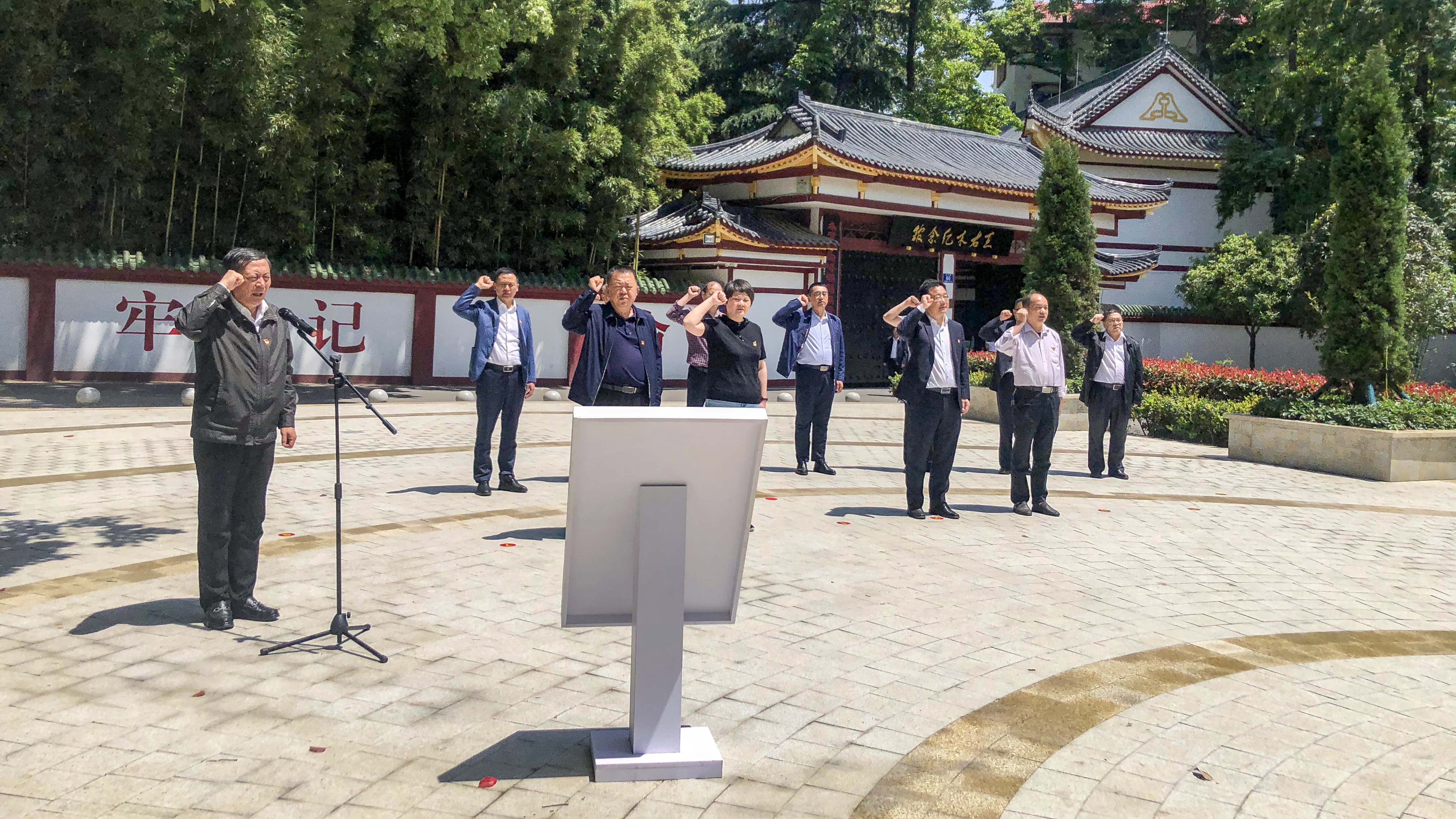 全体成员来到王右木纪念园,跟随讲解员的步伐,参观王右木故居及纪念馆,认真聆听王右木对中国革命、对马克思主义在四川早期传播所作的贡献及其当代价值情况介绍。同志们面对王右木雕像,在党委书记王海滨的带领下,重温入党誓词。