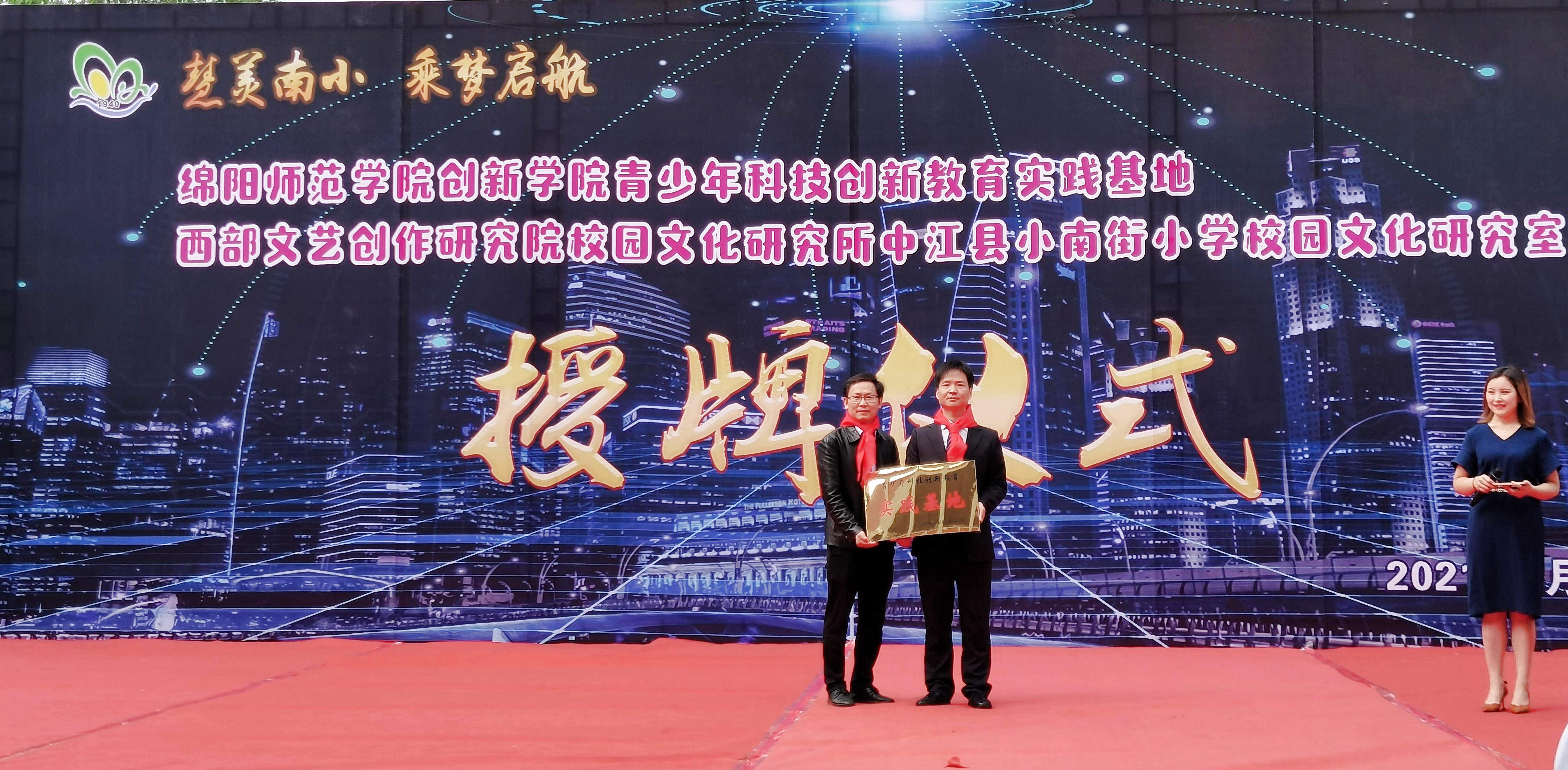 4月21日,学校创新学院“青少年科技创新教育实践基地”挂牌仪式,在中江县小南街小学校举行。西部文艺创作研究院院长詹仕,中江县教育局、中江县科协等相关负责人,我校创新学院负责人出席挂牌仪式。中江县玉兴学校、黄鹿学校、永太学校等中小学校校长及小南街小学全体师生参加了仪式。中江县小南街小学校校长廖海滨致欢迎词。