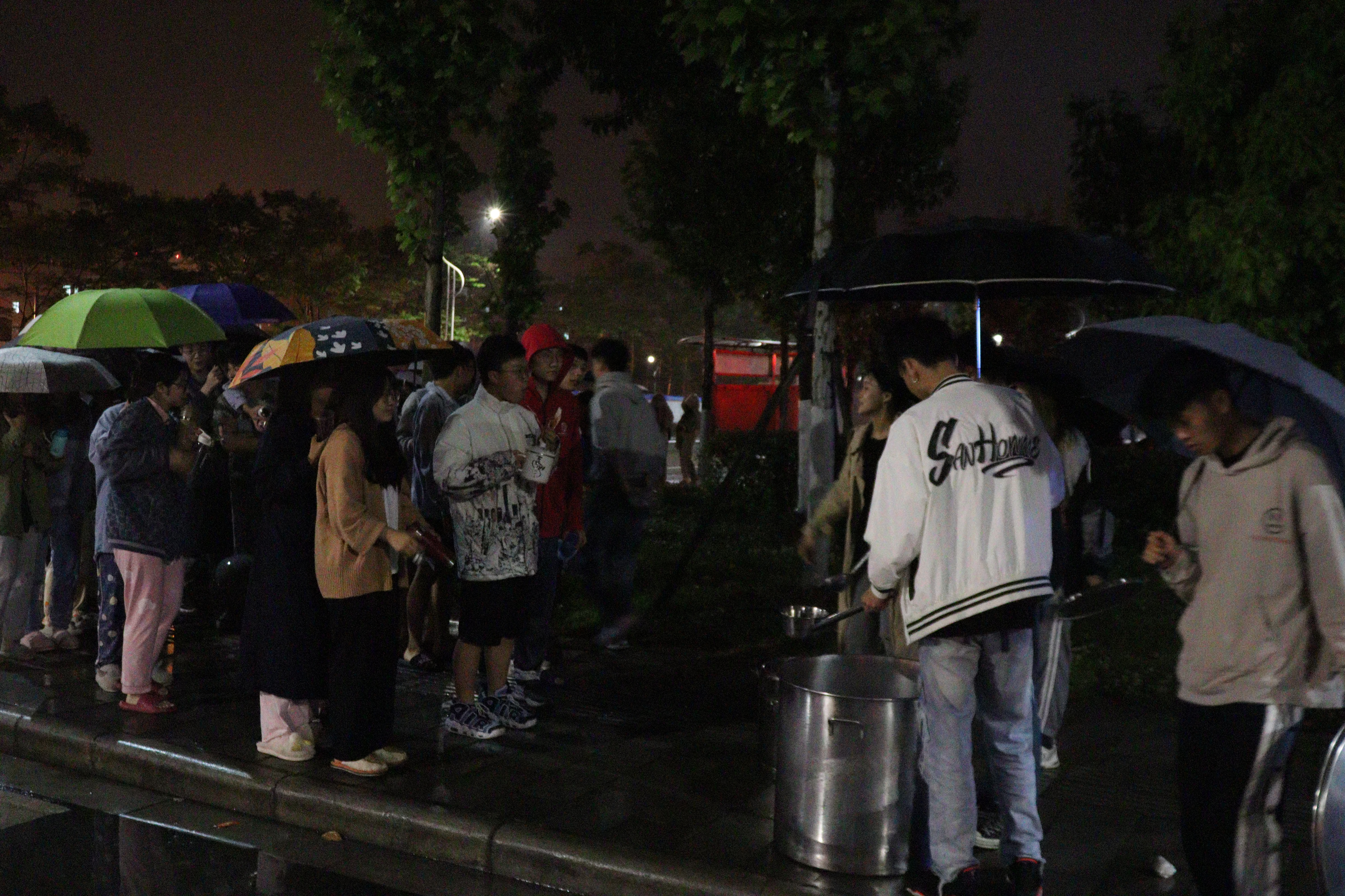 虽已是晚上10点,但是前来领取姜汤的学生仍然络绎不绝,现场有序且温馨,学生纷纷表示,学院突如其来的微暖举动让大家内心幸福感满满。