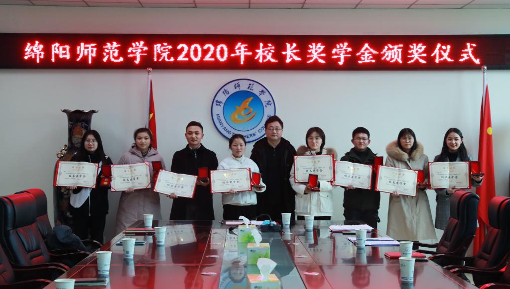 据悉,校长奖学金是学校践行“以学生为中心”的办学理念,在学生中选出符合新时代要求的人才典范而设立的一项最高荣誉,旨在激励绵师学子坚定理想信念、练就过硬本领、增强创新精神。2020年度校长奖学金经过学生个人申报、学院推荐、学工部初评、学生答辩、全校公示、校长审批等阶段,最终评选产生了8名优秀学生。
