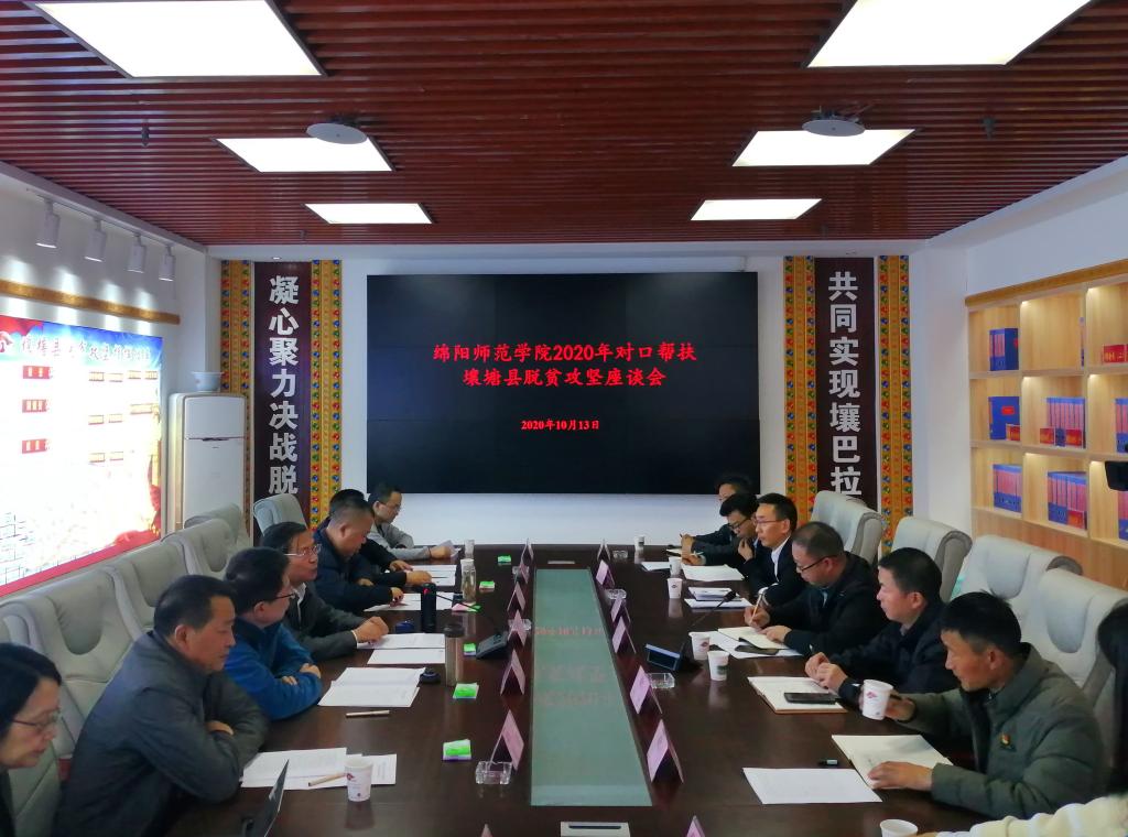 壤塘县脱贫攻坚指挥部专题座谈会上,王海滨介绍了三年来学校采取的各项帮扶措施,总结了帮扶工作取得的主要成效。王海滨表示,下一步学校将与壤塘县携手共进,深化校地合作、巩固脱贫成果、推进乡村振兴,实现互利共赢。阿坝州国资委副主任周波感慨的说:三年来绵阳师范学院党政主要领导先后来壤10余次,率先垂范,靠前指挥,落实省委、省政府对口帮扶决策部署,以实际行动显示了绵壤一家亲,绵师情意重深厚感情。