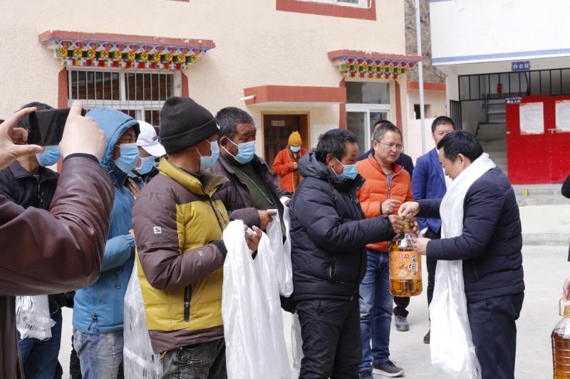 在茸木达乡,王力在学校定点帮扶的两个贫困村进行了现场慰问,与当地村民进行了亲切的交谈,代表学校为贫困户送上了慰问品。当地老百姓真诚献上了哈达和锦旗,他们用洁白的哈达和“精准扶贫办实事、结对帮扶暖人心”的锦旗,表达了对我校帮扶工作的肯定和感谢。