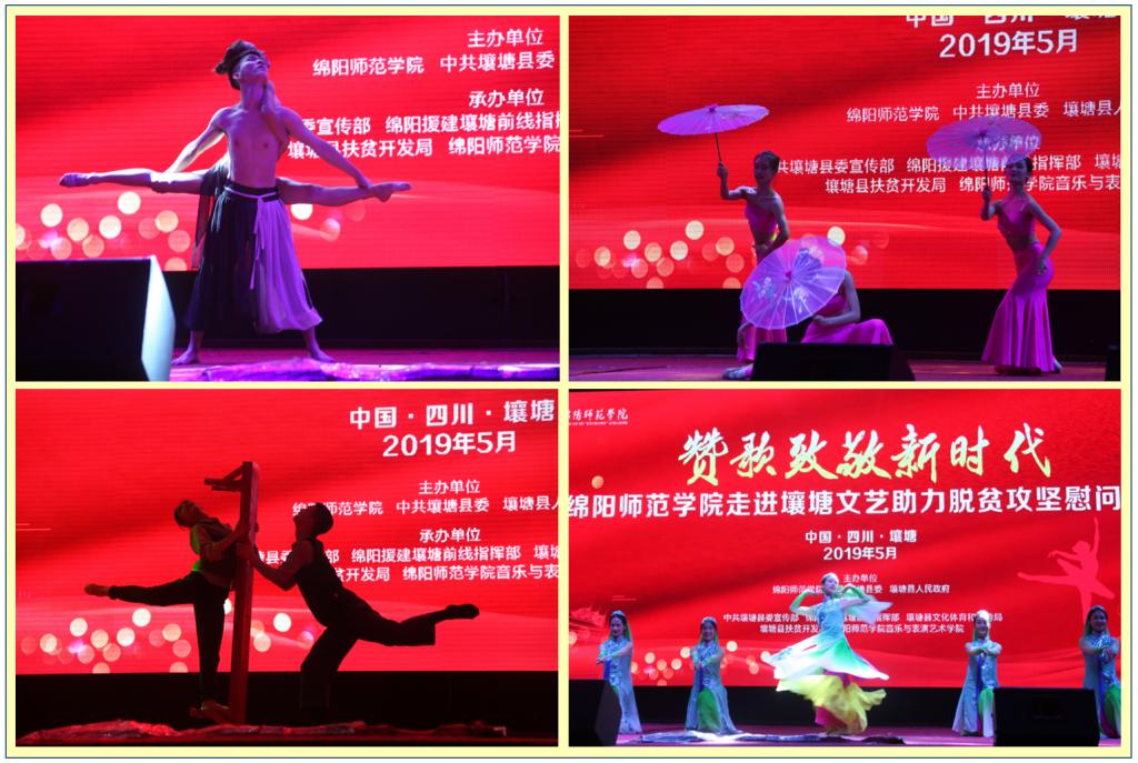 整场晚会综合运用音乐、舞蹈、器乐、情景表演等舞台手段,生动再现了精准扶贫以来净土圣境阿坝壤塘的山河巨变,形象反映了中国共产党引领中华民族向着复兴梦想接续奋斗的壮阔征程,充分表达了壤塘儿女在以习近平同志为核心的党中央坚强领导下,全力打好精准脱贫攻坚战和决胜全面建成小康社会的决心和信心。整场演出主题鲜明,内容丰富,形式多样,动情的歌声真挚而淳朴,完美的表演持续点燃场内氛围,引发全场观众的共鸣,掌声、欢呼声、呐喊声此起彼伏、响彻全场。壤塘县委、县政府的负责同志表示,本次慰问演出在壤塘县引起了轰动,这是一场奉献的演出、一次诚心的展示,一场文化的盛宴、一次文明的交流,更是一场民族的交融、一次情感的升华,充分体现了绵阳师范学院对藏区干部群众的深情厚谊,展示了真心帮扶的无私精神,更展现了我校师生精湛的专业技能和良好的团队风采。