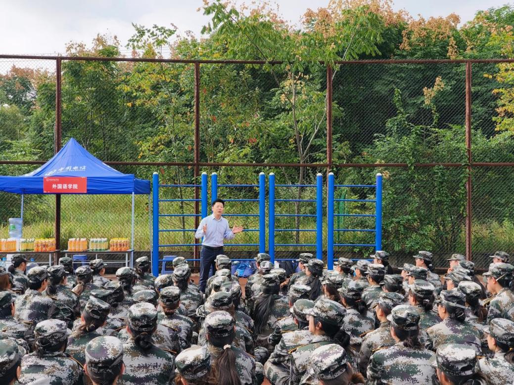 秋阳正好,训练场上口号铿锵。正值2025级新生军训深入开展之际,10月15日上午,外国语学院党委书记文小兵、副院长高见、党委副书记崔芸、副院长苟萍及全体辅导员一行,专程前往田径场训练场地,看望慰问承训教官与全体参训学生,并为大家送上学院的关怀与“清凉”。