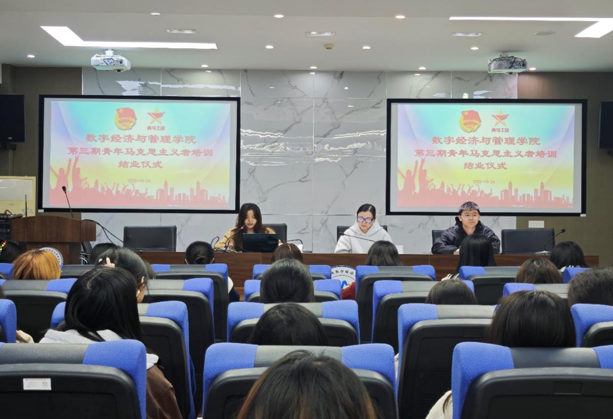 为深入学习贯彻习近平新时代中国特色社会主义思想,扎实推进青年马克思主义者培养工程,10月24日,数字经济与管理学院第三期“青马班”结业仪式在厚德楼415会议室顺利举办。学院相关负责人及全体学员共同参加仪式。
