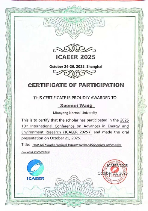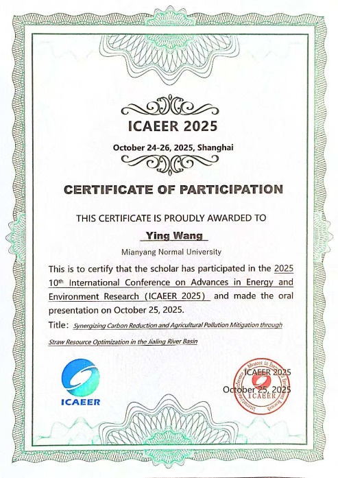 10月24—25日,第十届能源与环境研究进展国际学术会议(10th ICAEER 2025)在上海电力大学杨浦校区召开。地理与环境学院“关键矿产资源与地质环境评价”和“土壤生态修复与耕地安全利用”研究团队四位教师参会并作英文学术报告。