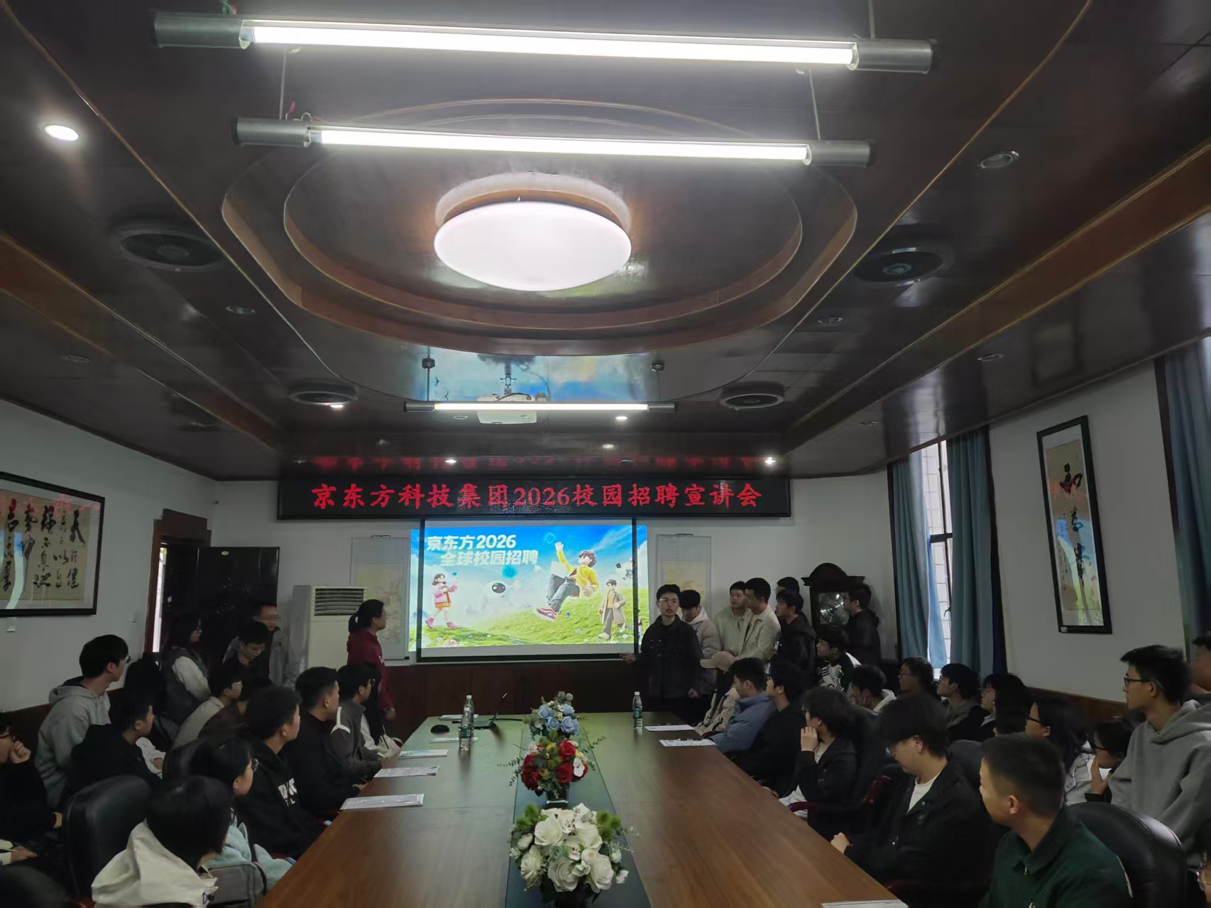 新一代信息技术革命浪潮奔涌,智能制造产业升级方兴未艾,对高素质工程技术人才提出了更为迫切的渴求。为精准搭建校企人才对接桥梁,开拓毕业生优质就业渠道,并深化产教协同育人模式,京东方科技集团(BOE)校招经理赵双、成都京东方B16招聘经理谭文一行于10月23日莅临学校智能制造学院,举办了2026届毕业生专场招聘宣讲会,并与学院就未来战略合作进行了深入务实的交流。