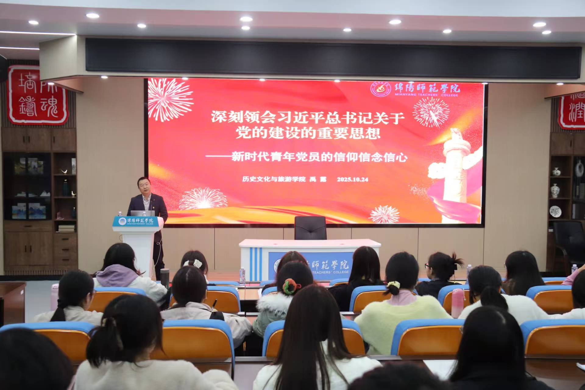 开班仪式结束后,历史文化与旅游学院党委书记禹露讲授开班第一课《深刻领会习近平总书记关于党的建设的重要思想——新时代青年党员的信仰信念信心》。课程聚焦“深刻领会习近平总书记关于党的建设的重要思想”“正确把握重要思想的科学方法”“新时代青年党员的信仰信念信心”三大重点内容,强调青年党员要坚定践行“十三个坚持”,以“实事求是、人民至上、守正创新、问题导向、系统观念”为科学指引,从长津湖战役精神、“天眼”巨匠南仁东、张桂梅校长等榜样事迹中汲取奋进力量,切实坚定信仰、筑牢信念、提振信心,为中华民族伟大复兴贡献青春力量。