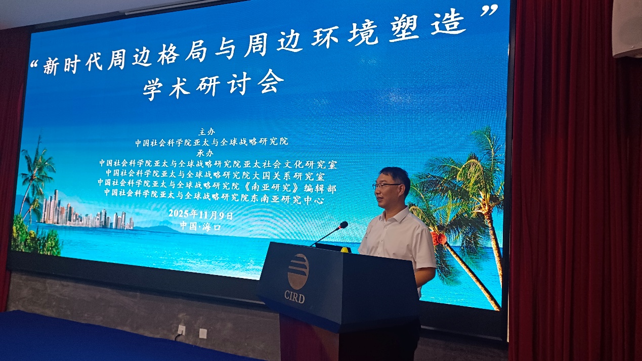 11月9日,“新时代周边格局与周边环境塑造”学术研讨会在海南海口举行。该会由中国社会科学院亚太与全球战略研究院主办,亚太社会文化研究室、大国关系研究室、《南亚研究》编辑部、东南亚研究中心承办。我校中国周边国家研究中心、外国语学院副院长高见和教师李云涛受邀参加并作学术发言。