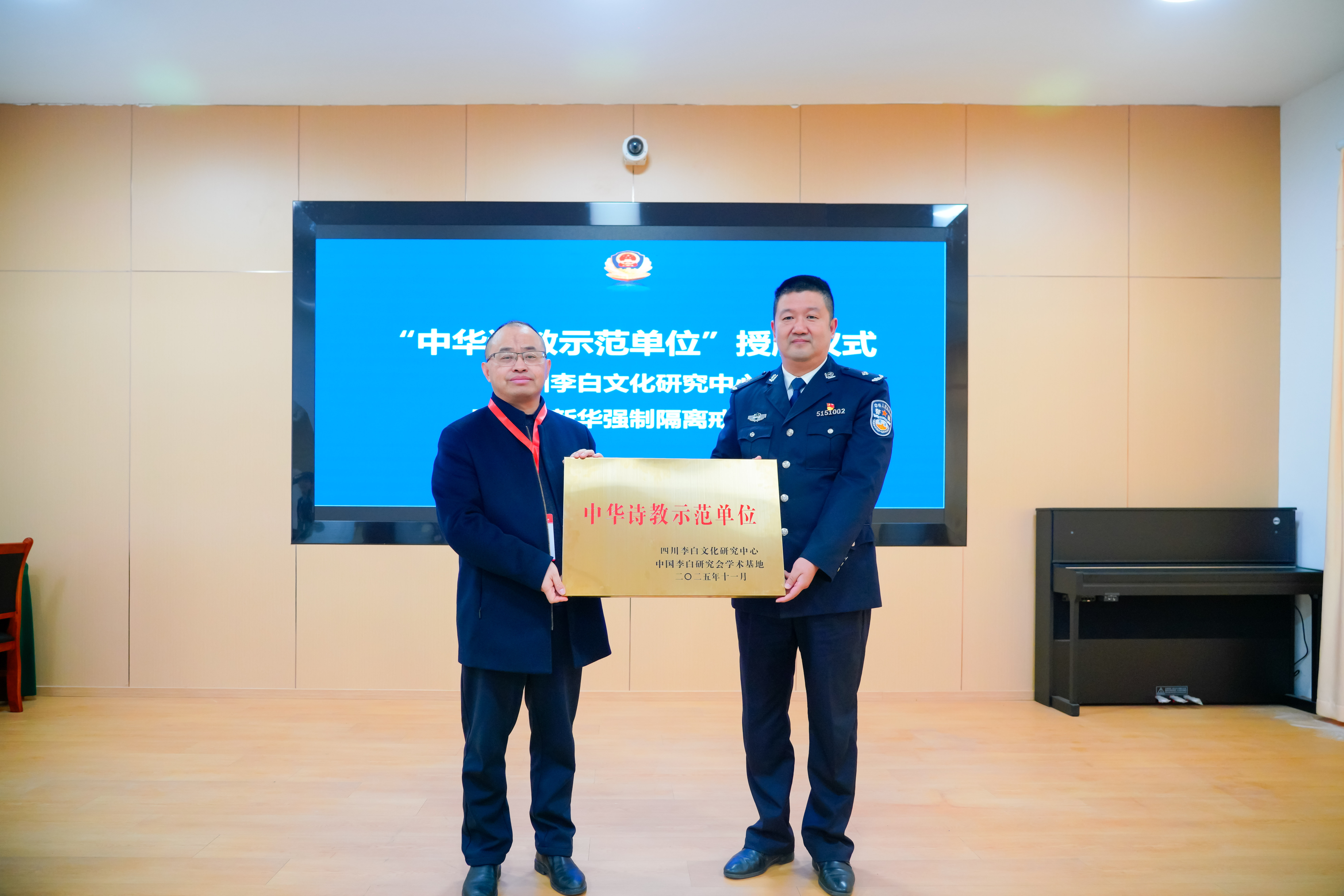 成果展示环节的诗词吟、诵表演,呈现了“诗教”实践的初步成效。活动现场举行了“中华诗教”示范单位授牌仪式,充分肯定了该所在诗教融合戒治模式方面的积极探索,杨观、马宁参与授牌仪式。