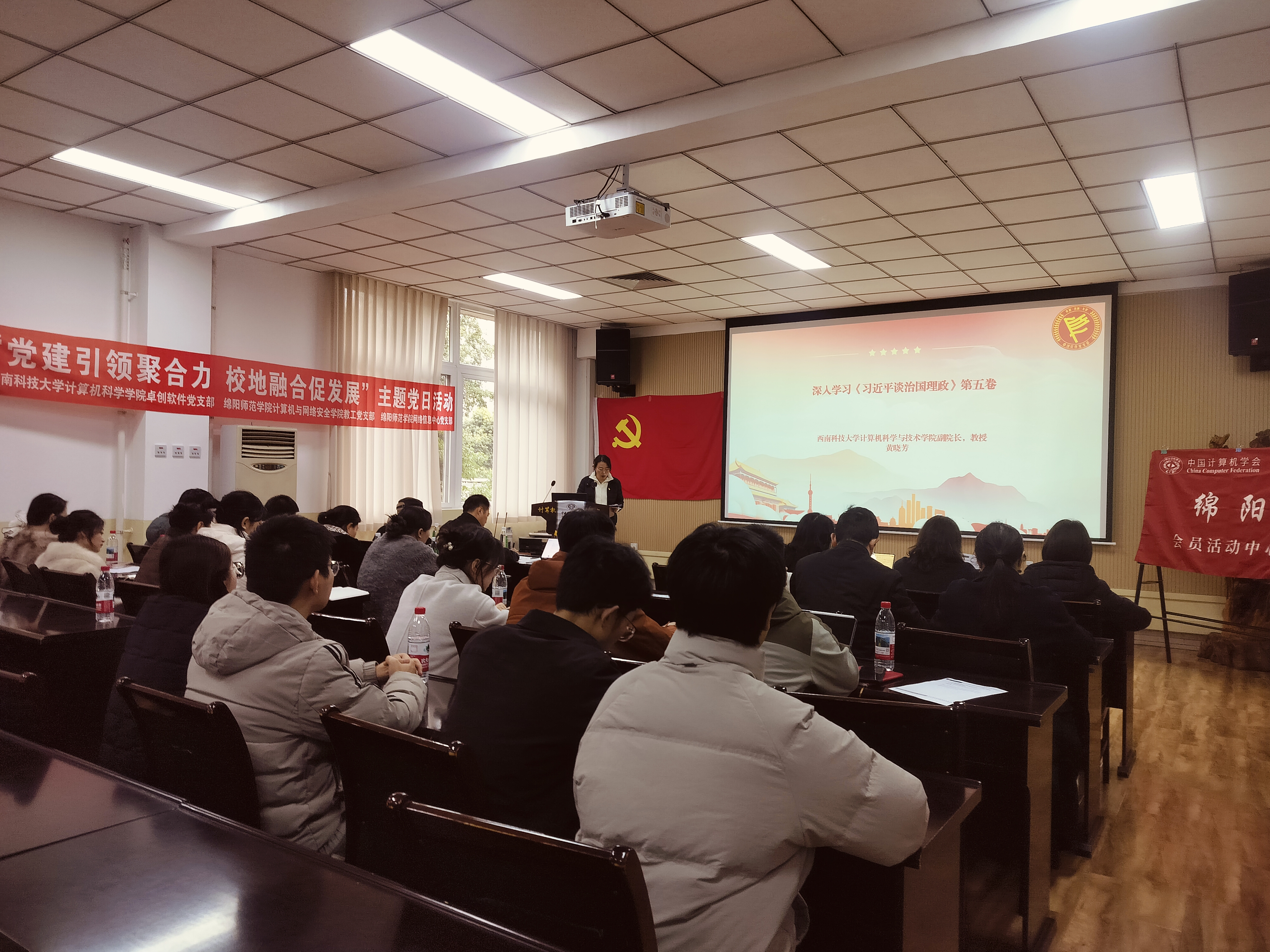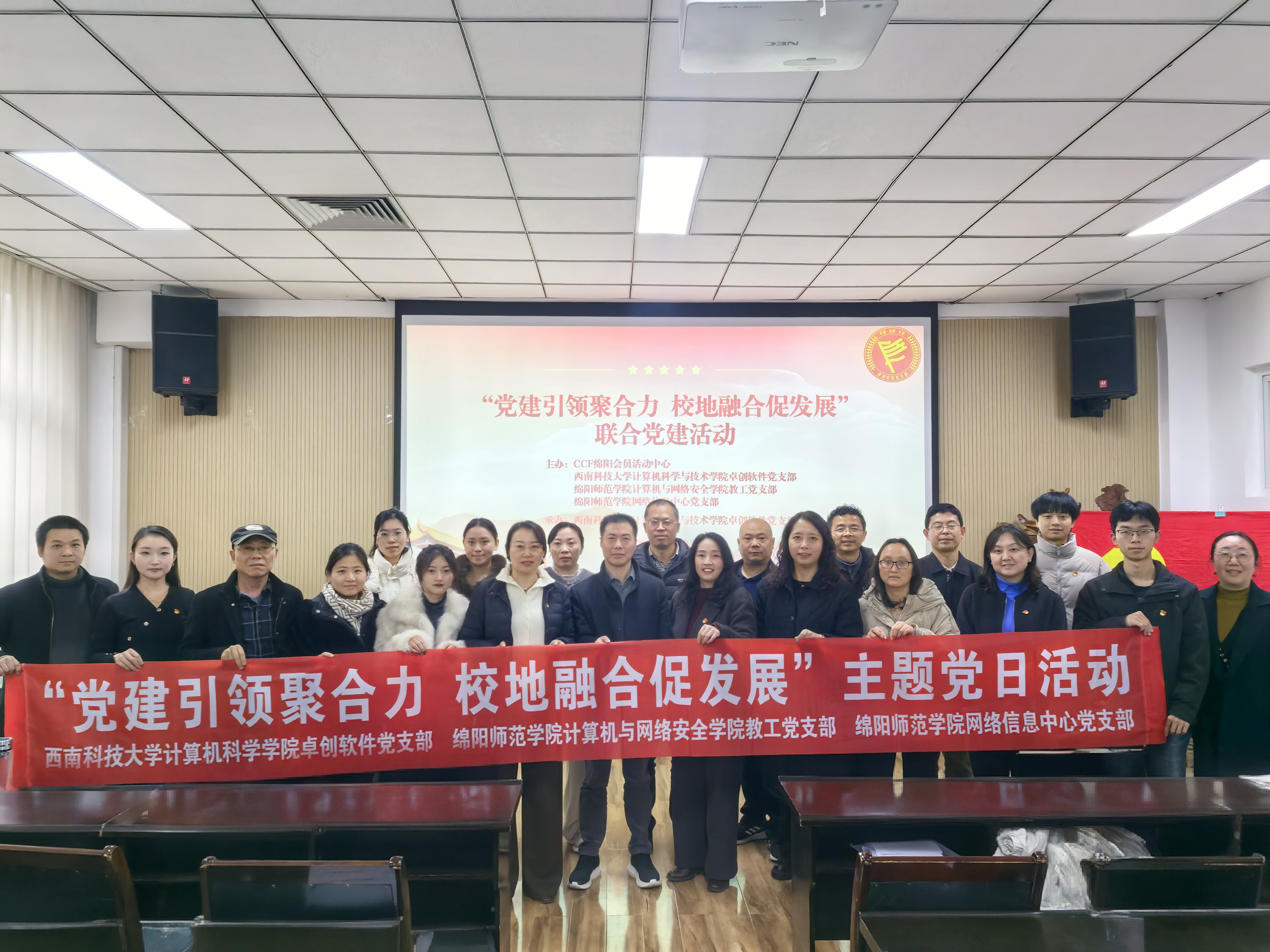 12月12日下午,学校计算机与网络安全学院教工党支部与西南科技大学计算机科学学院卓创软件党支部、学校网络信息中心党支部、CCF绵阳会员活动中心联合开展的“党建引领聚合力、校校协同促发展”主题党日活动在西南科技大学举行。