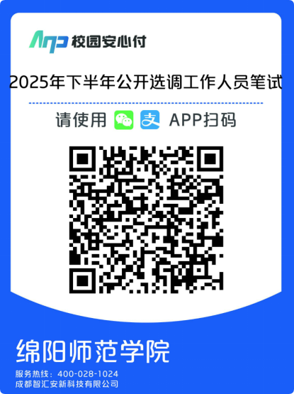 资格初审合格后,由报考人员于2025年12月26日17:00前扫描下方二维码完成网上缴费(按照四川省发展和改革委员会、四川省财政厅《关于全省人力资源社会保障部门行政事业性收费的通知》川发改价格规〔2023〕473号规定笔试1科缴费50元,共50元),缴费成功后,请于2025年12月26日17:00前,将缴费截图(含缴费金额、报考者姓名、身份证号码及报考岗位代码等信息)上传至报名系统进行确认,逾期不再确认。未按要求在规定时间内缴费的或虽缴费但未按要求在规定时间内提供缴费凭证进行缴费确认的,视为自动放弃报考。缴费成功后,非政策性因素,不予退费。