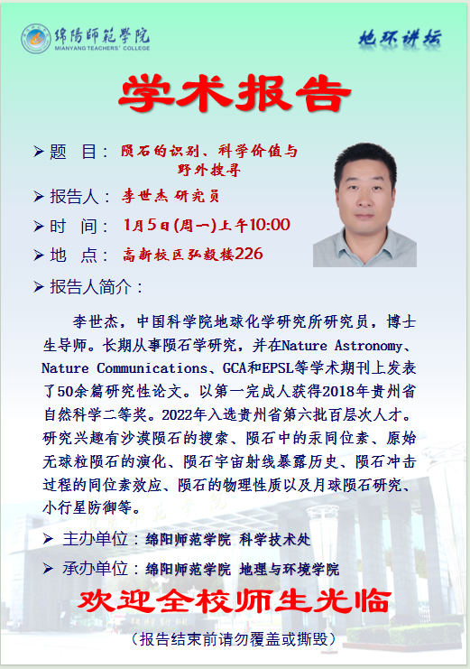 上一条: 学术讲座预告(20260109)| 教学的节秦与秩序:新教师课堂掌控力提升之道 下一条: 学术讲座预告(12.30)| 绵阳科技城发展研究成果报告