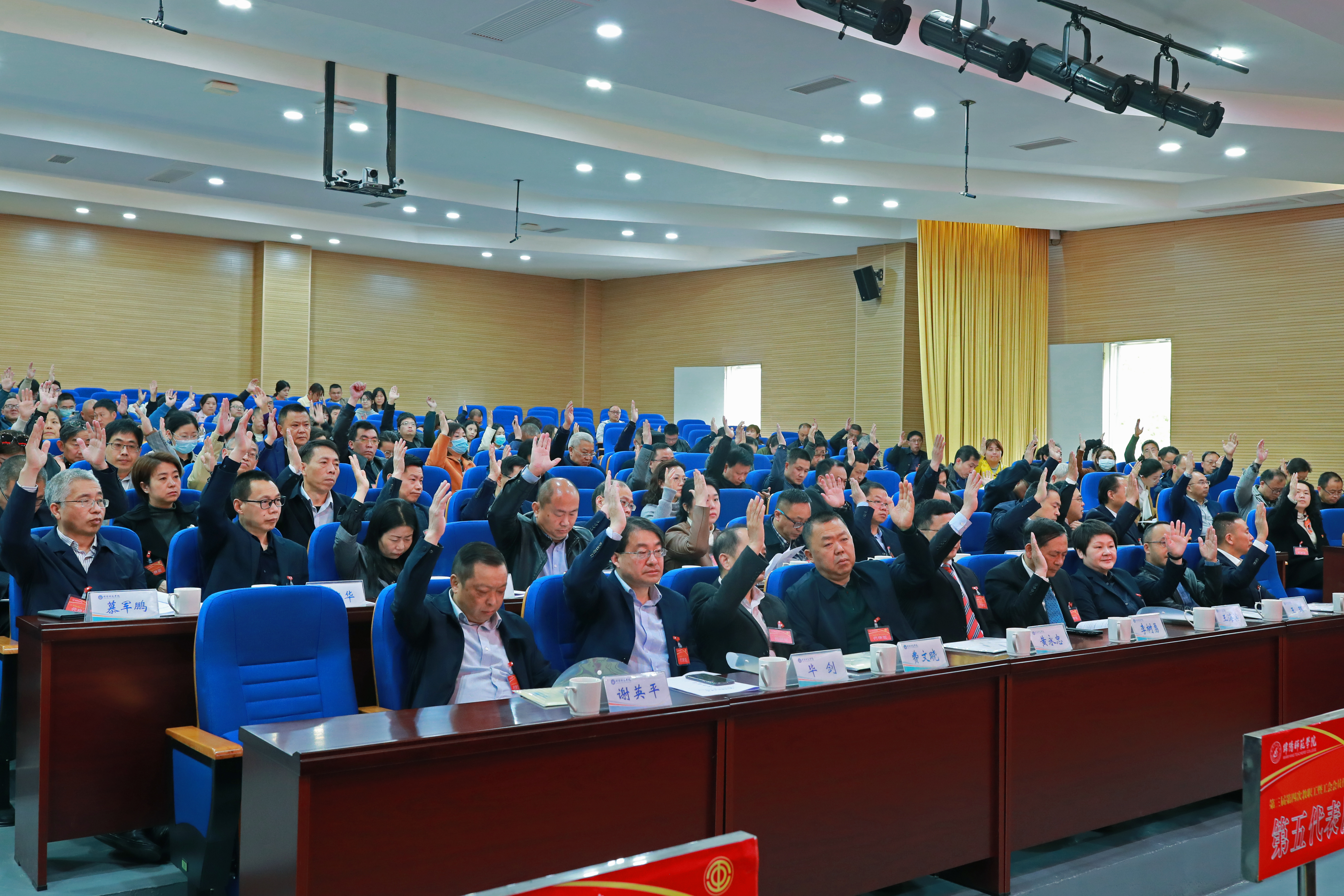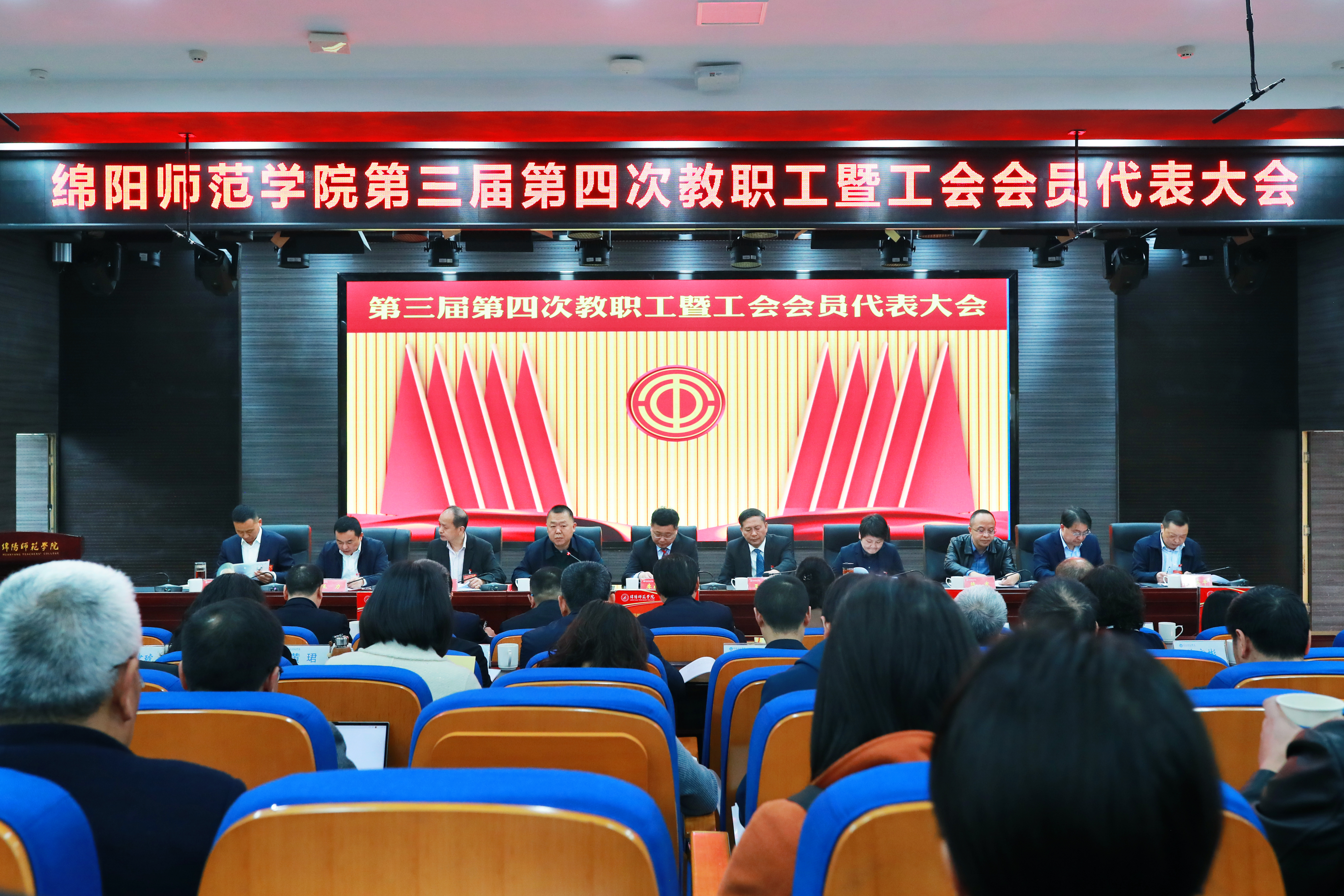 4月7日,学校第三届第四次教职工暨工会会员代表大会在高新校区厚德楼246会议室召开。学校全体党政领导出席会议,168名正式代表和23名列席代表参加会议。