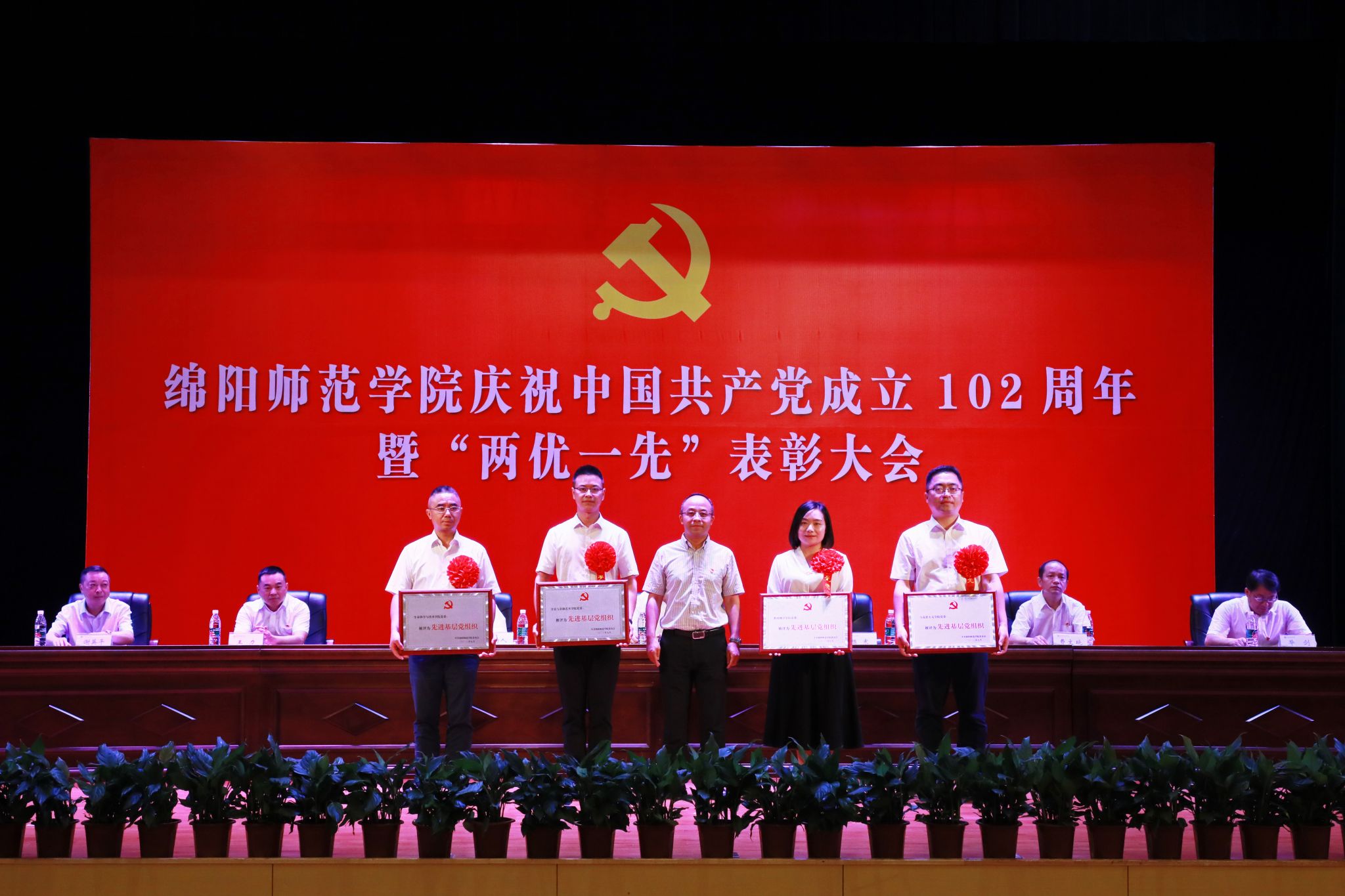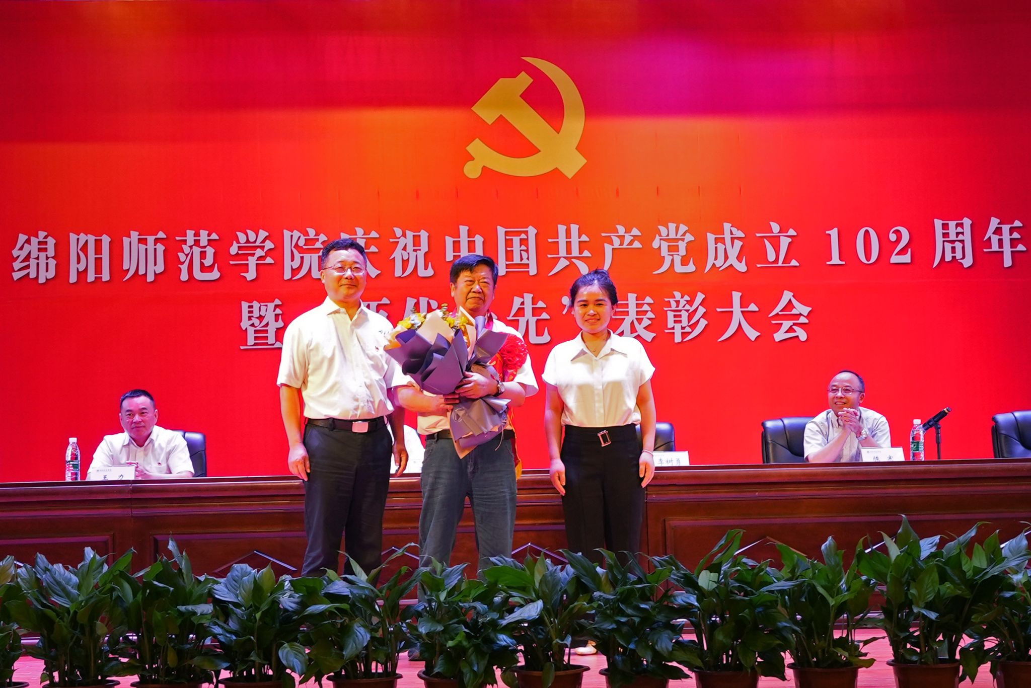 党委副书记、校长陈寒宣读“两优一先”表彰决定。校领导依次为先进基层党组织、优秀共产党员代表、优秀党务工作者颁奖。先进基层党组织书记代表、教育科学学院党委书记王海榕,优秀共产党员代表、资源环境工程学院教师贾俊作交流发言。