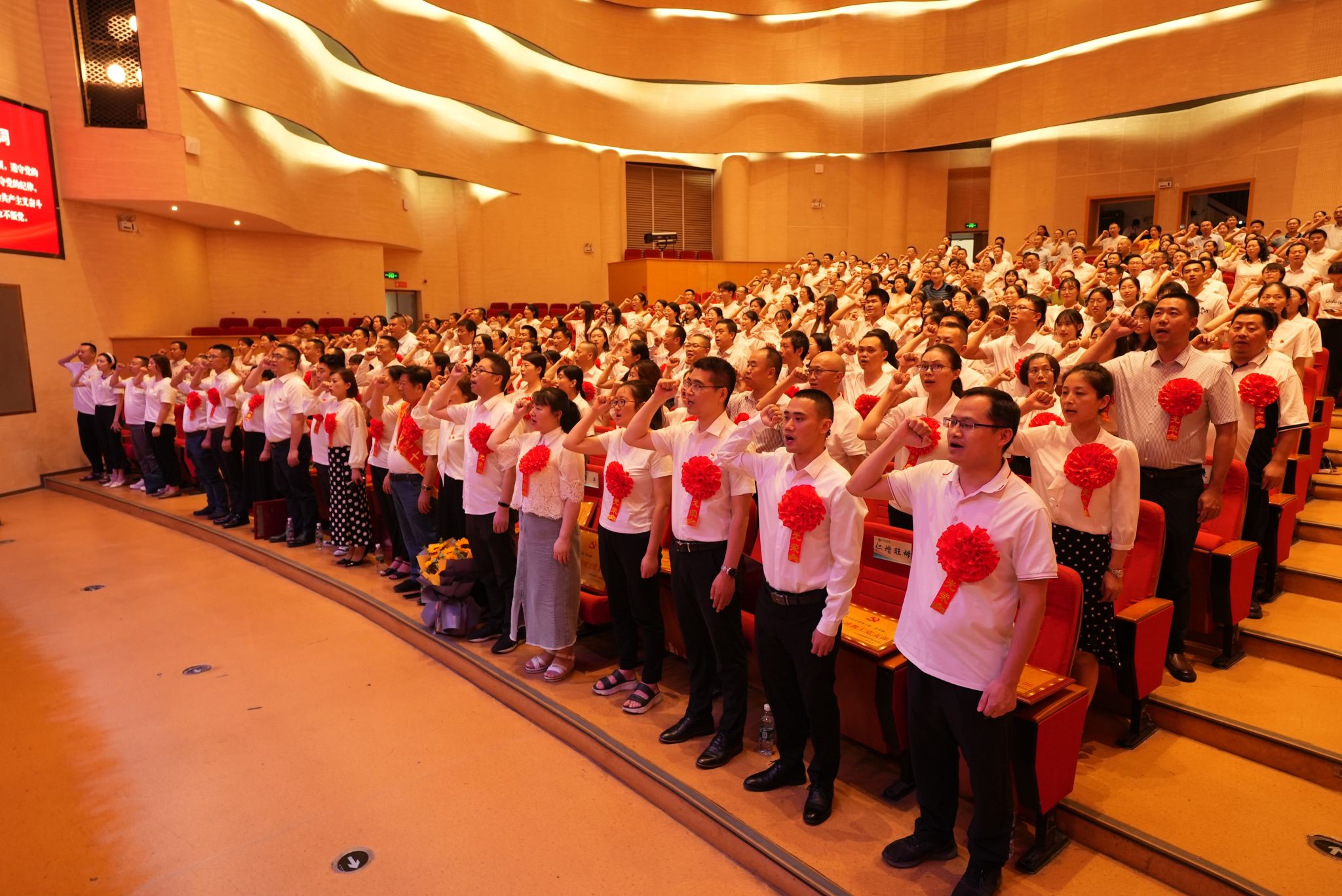 6月30日下午,学校庆祝中国共产党成立102周年暨“两优一先”表彰大会在高新校区行知音乐厅举行。全体在校校领导出席会议,“光荣在党50年”老党员、“两优一先”表彰对象、中层干部、党支部书记、新接收预备党员、机关党委党员代表参加会议。会议由党委副书记黄永忠主持。