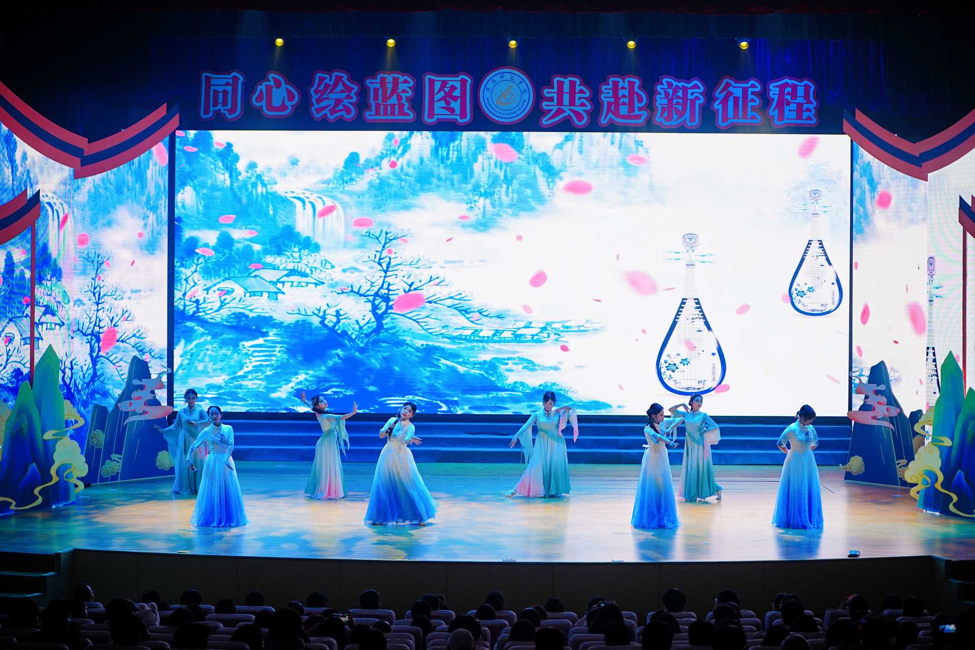 师生在情景剧《笔绘初心・艺绽芳华》中沉浸式感受“厚德、博学、笃行、弘毅”的校训精神。流行舞串烧《青春律动》一登场,便成为全场的“活力焦点”,现场欢呼声不断。