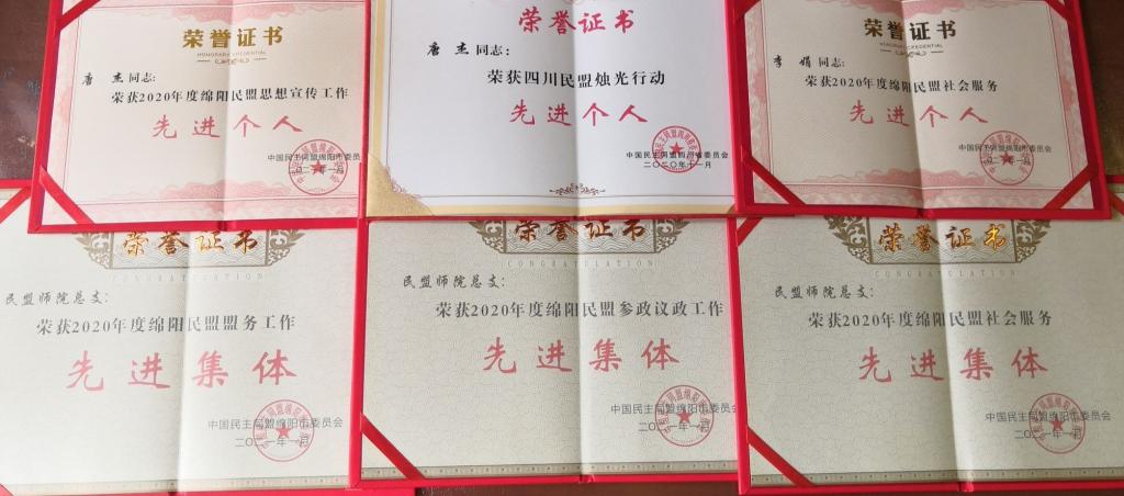 1月17日,从民盟市委全委会获悉,民盟绵阳师范学院总支2020年度获得了来自民盟省委市委的六项表彰,分别是省委“烛光行动先进个人”、市委“社会服务先进集体”、“盟务工作先进集体”、“参政议政先进集体”、“社会服务先进个人”、“思想宣传先进个人”,几乎囊括了年终设立的所有奖项。每一项荣誉证书,体现了全体盟员在工作中的倾心付出,是全体盟员齐心努力的成果。