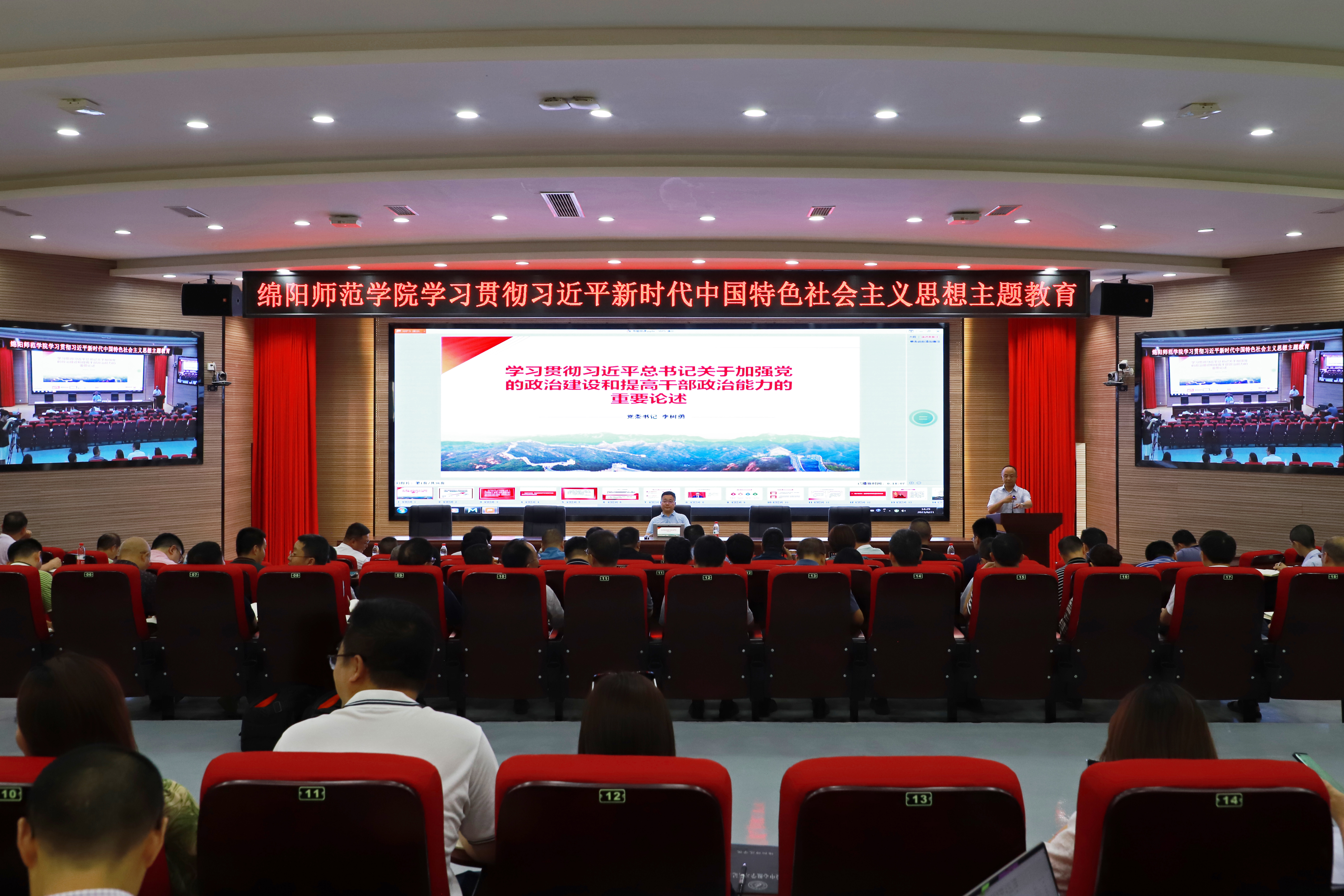 根据省委关于深入开展学习贯彻习近平新时代中国特色社会主义思想主题教育的部署要求,6月21日下午,学校党委书记李树勇以《学习贯彻习近平总书记关于加强党的政治建设和提高干部政治能力的重要论述》为题,为全校副处级及以上干部和所属支部全体党员、干部讲主题教育专题党课。省委第二十巡回指导组张飞同志到会指导。专题党课由党委副书记、院长陈寒主持。