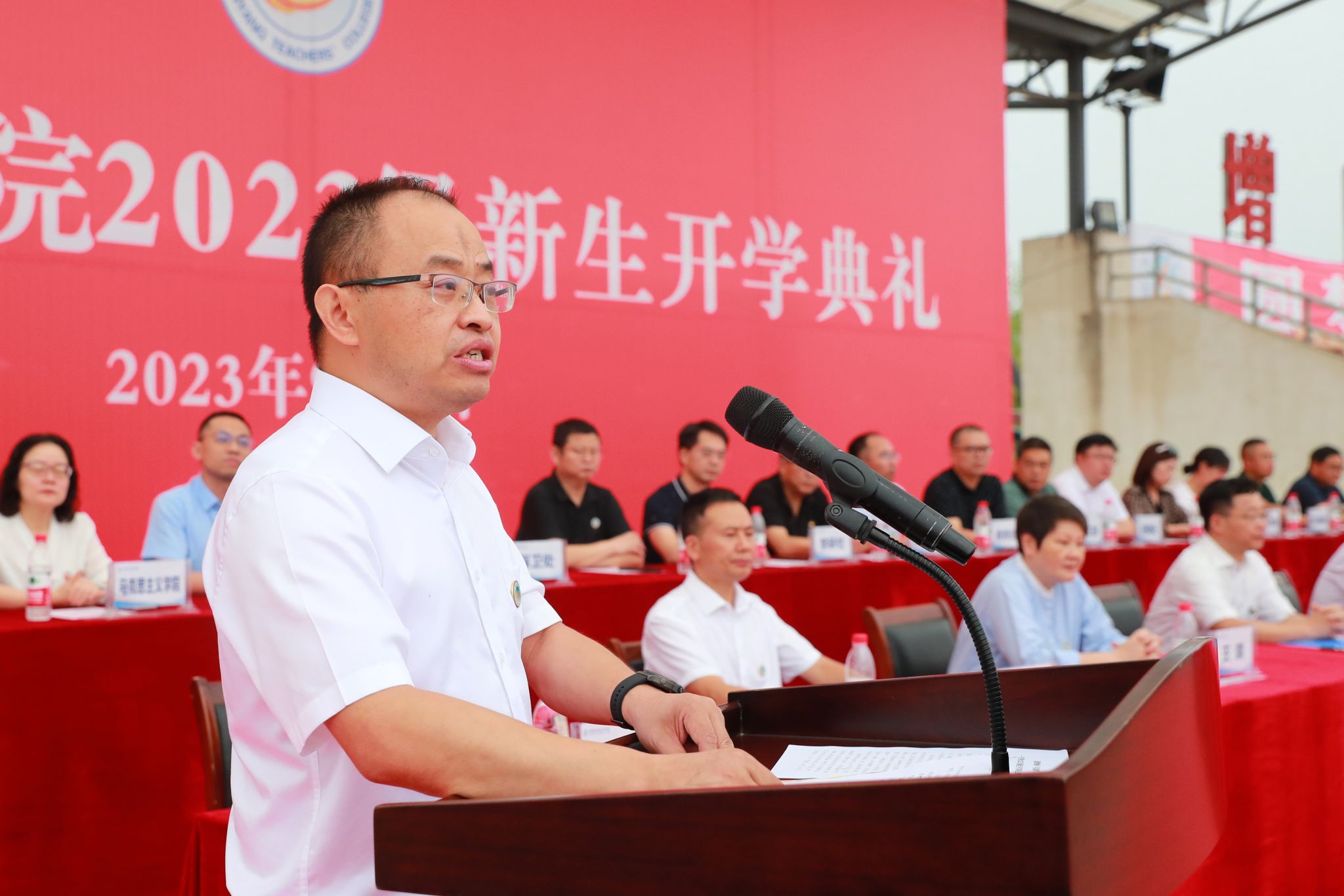 党委副书记、校长陈寒代表全校师生向2023级新生表示热烈的欢迎。他勉励全体新生鼓足“猛虎下山”的拼劲和“劈波斩浪”的闯劲,敢为人先、追求卓越,用一生的真情投入、一辈子的顽强奋斗来谱写无愧于先辈、无愧于祖国、无愧于时代、无愧于人民的青春华章。