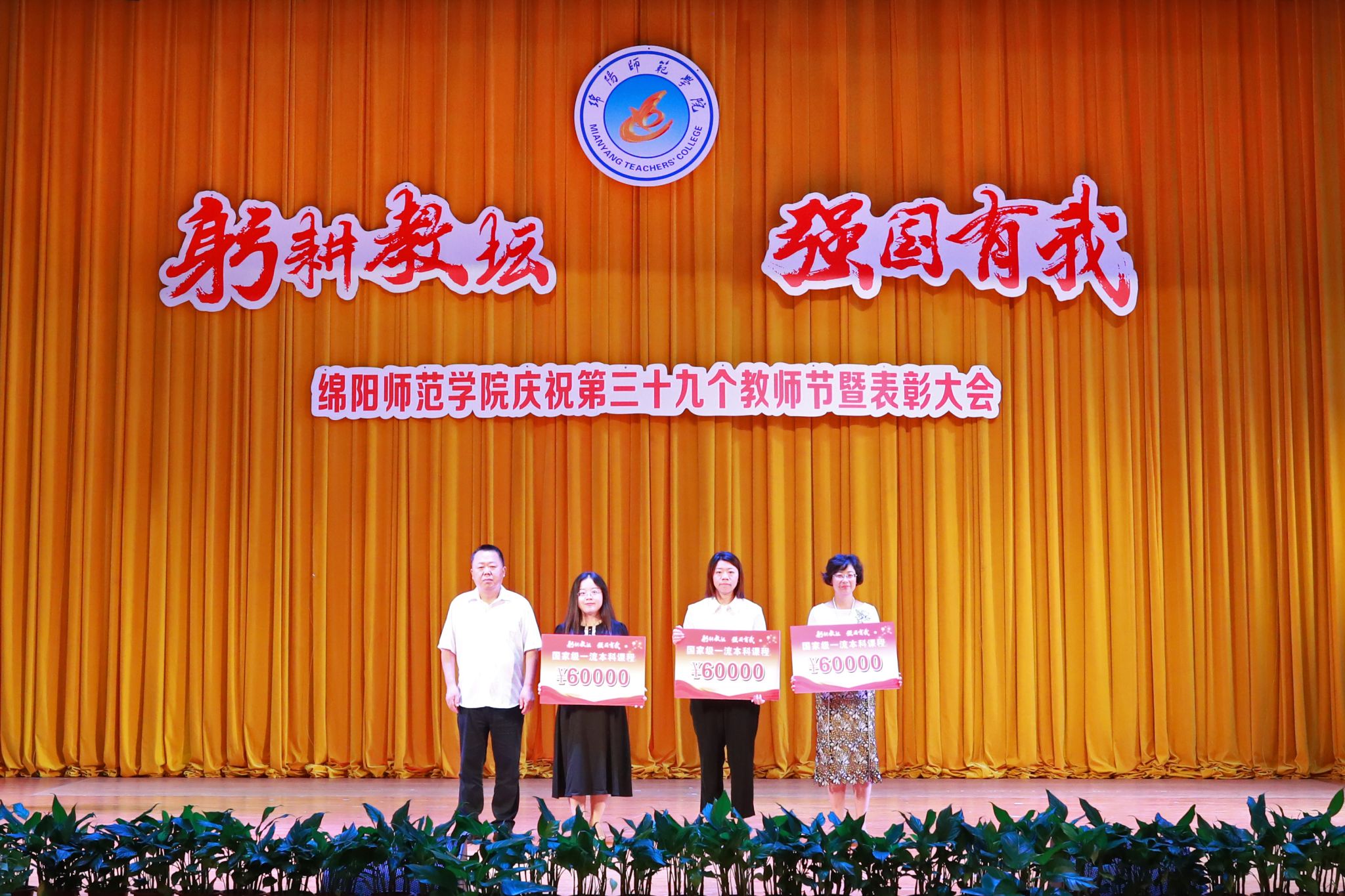 党委常委、副校长罗娅君为绵阳市优秀教师、绵阳市优秀教育工作者和绵阳市最美教师团队颁奖