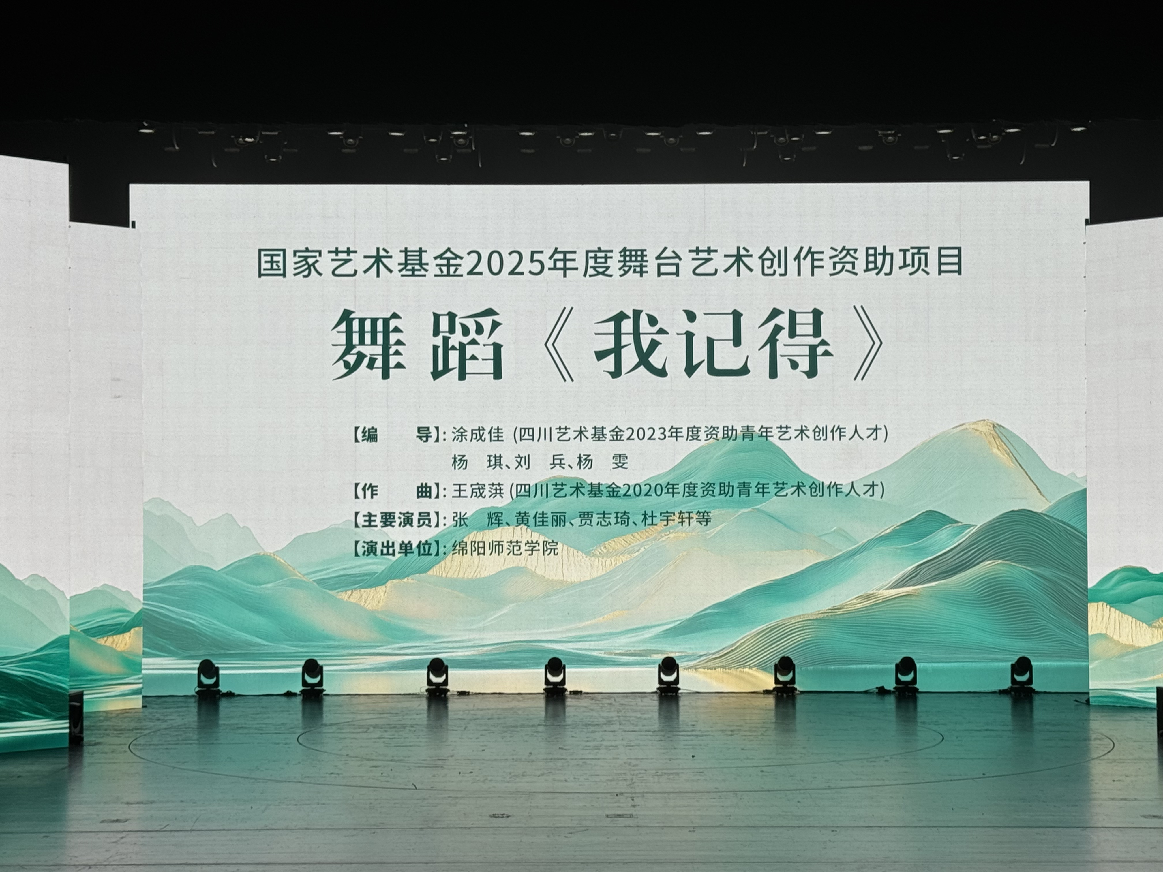 群舞作品《我记得》由我校音乐与舞蹈学院教师涂成佳、杨琪、刘兵、杨雯编创。其中,涂成佳作为该作品国家艺术基金和四川艺术基金的项目负责人,带领团队深入挖掘地域文化与情感记忆,以精湛的舞蹈语汇和深刻的艺术表达,展现了较高的创作水准和艺术感染力。该作品此前已成功获得国家艺术基金、四川艺术基金立项资助,并多次在国家级、省级展演中广受好评。