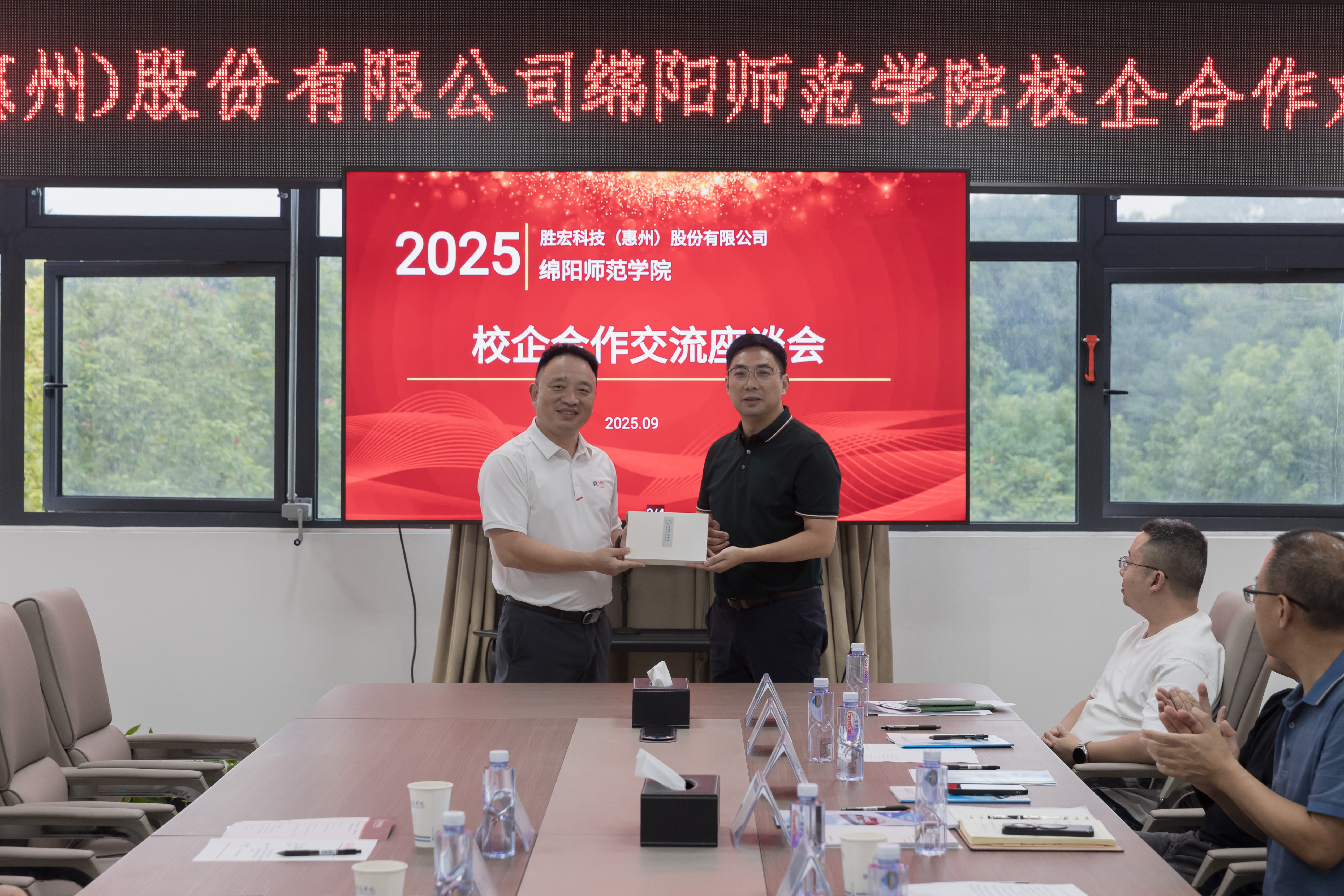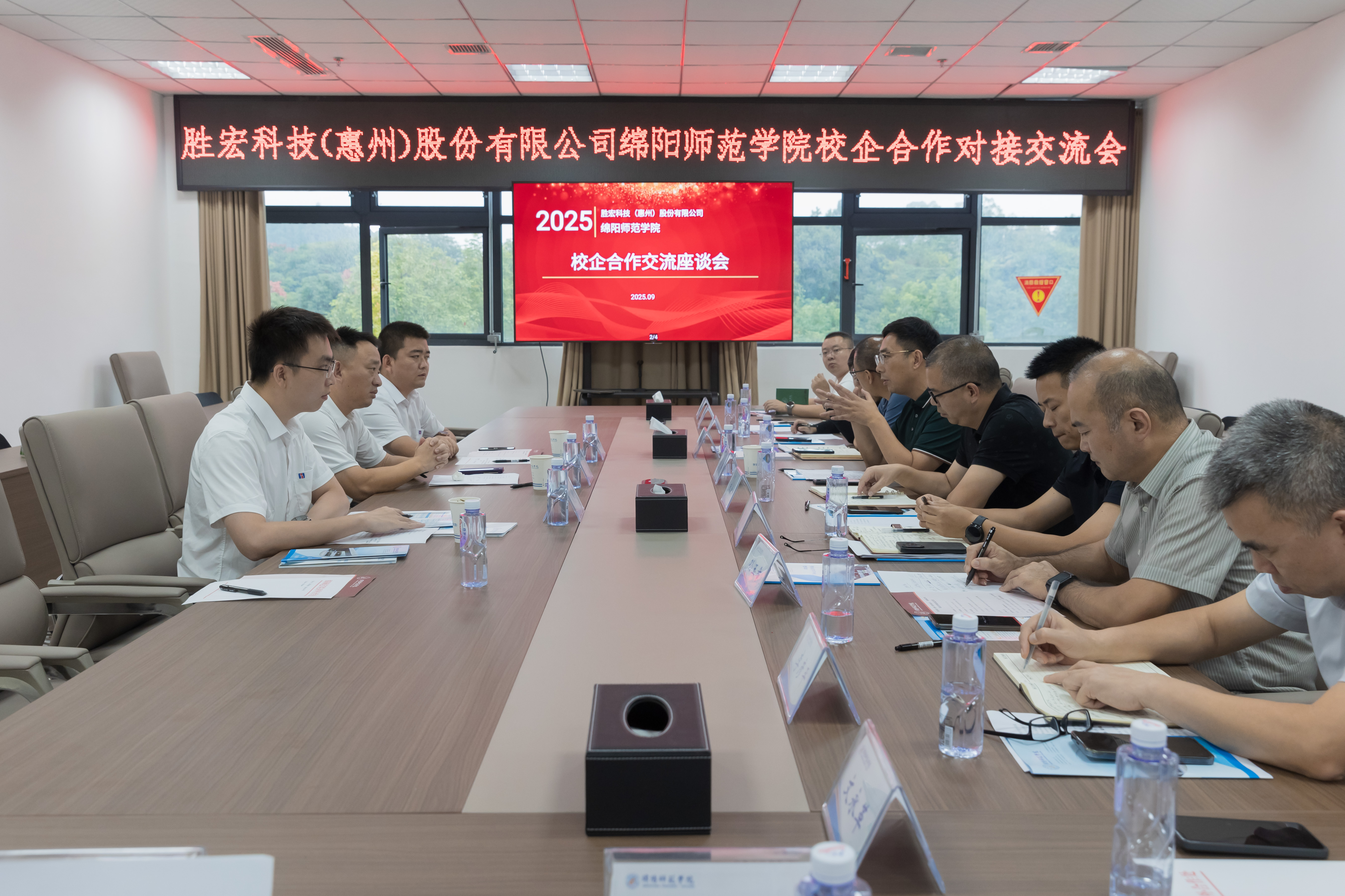 胜宏科技(惠州)股份有限公司招聘部经理王克,招聘部高级专员黄宇斌,绵阳市人民政府驻深圳中心干部张怡,学校党委办公室校长办公室、教务处、学生工作处、对外合作处,人工智能学院、智能制造学院、物理与电子信息学院、化学与材料工程学院、数字经济与管理学院、计算机与网络安全学院等负责人参加了会议。
