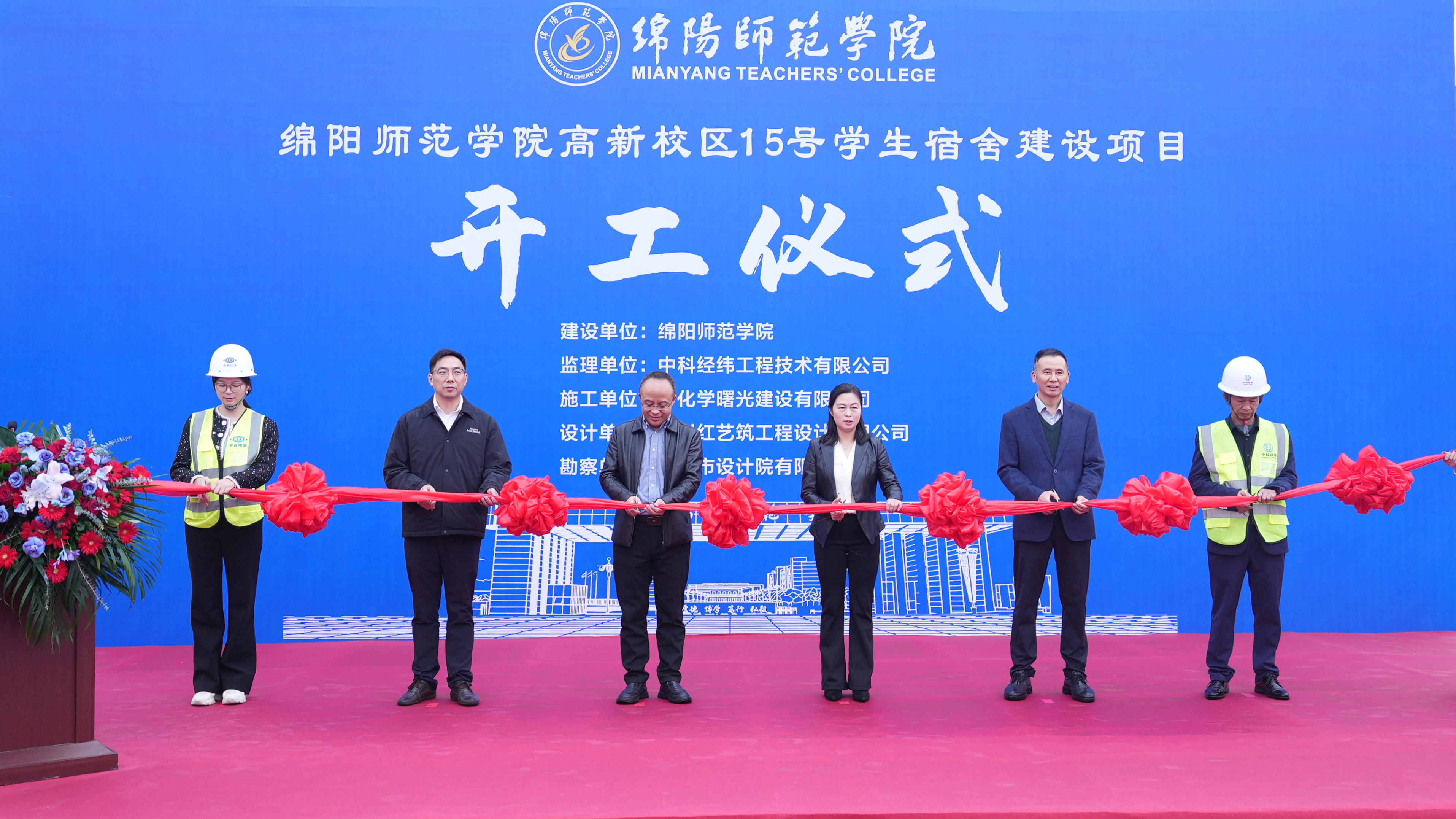 在热烈的气氛中,出席开工仪式的领导和嘉宾共同为高新校区15号学生宿舍建设项目剪彩。随着党委书记陈寒宣布“绵阳师范学院高新校区15号学生宿舍开工”,仪式现场彩烟腾空、机械轰鸣、掌声雷动。