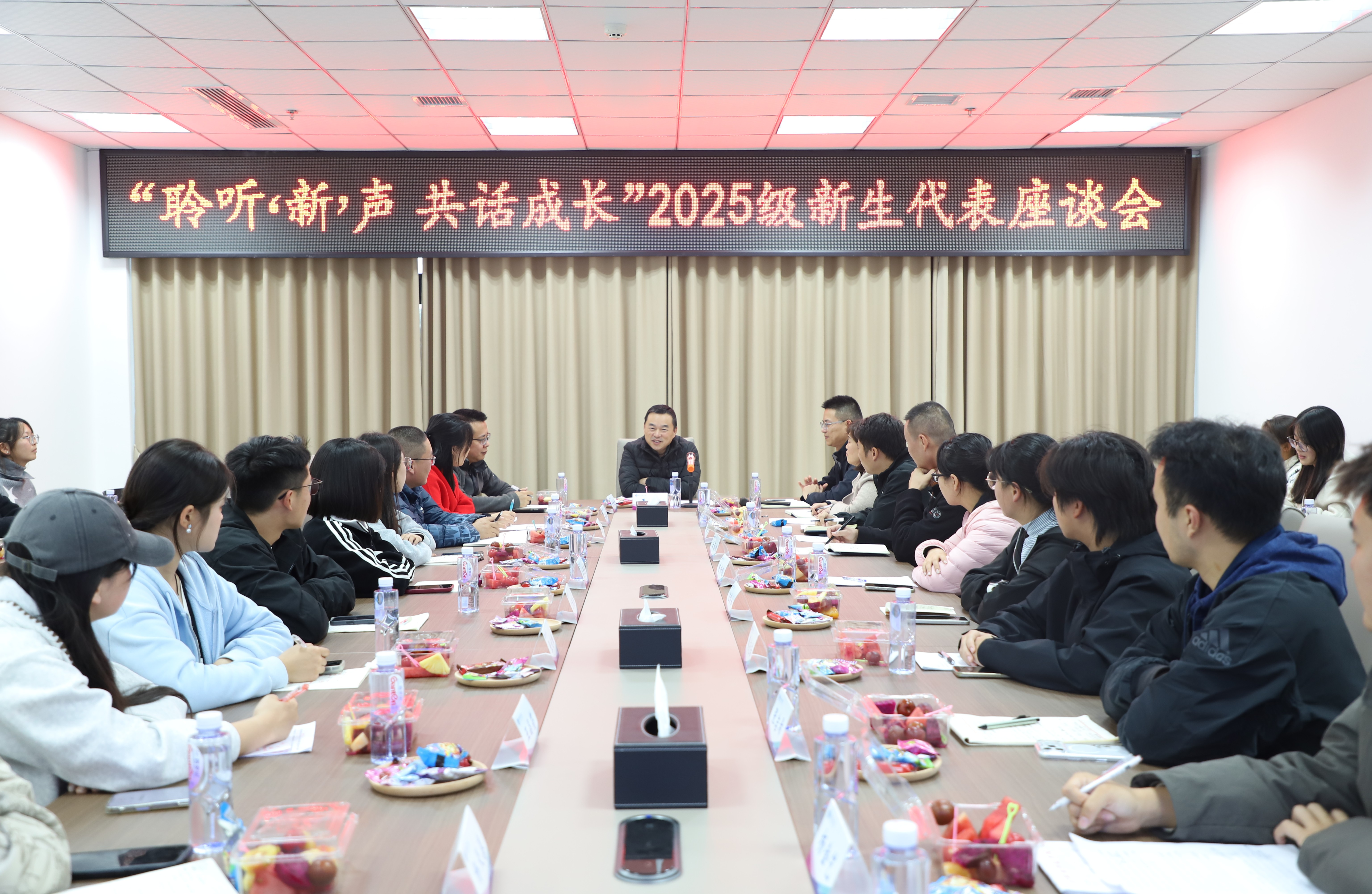 为了解新生思想动态,及时关注并回应新生在入学以来遇到的思想困惑、学习挑战、生活适应及未来发展等方面的问题与需求,11月6日,学校在高新校区学生活动中心206室举行以“聆听‘新’声、共话成长”为主题的2025级新生代表座谈会,校党委常委、副校长王力出席会议。学工部、校团委、教务处、保卫处、后勤处、研究生处等相关负责人,来自21个学院的新生代表参加座谈。座谈会由学工部负责人主持。