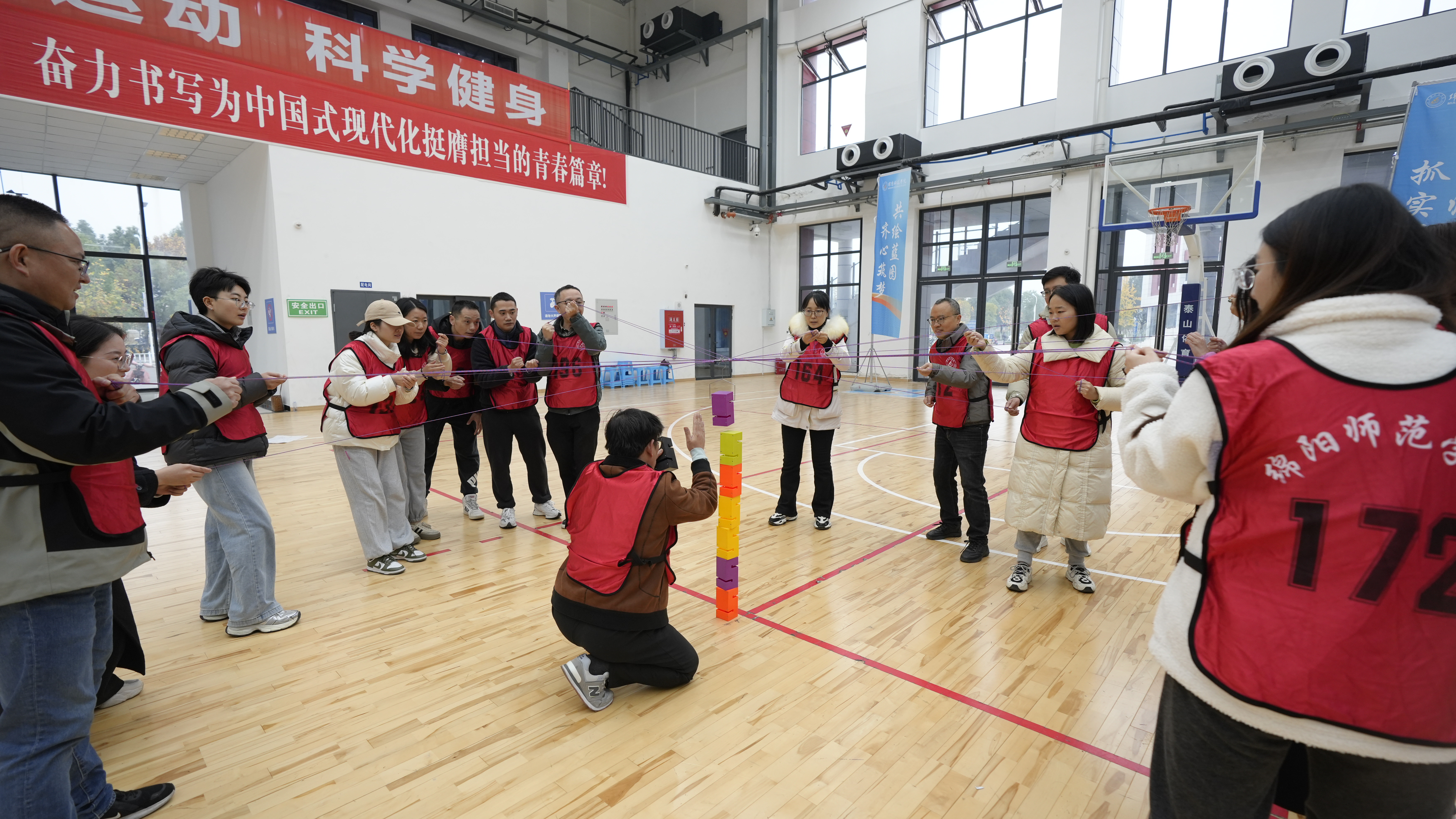 26日上午全体辅导员在高新校区室内篮球馆开展团队素质拓展训练,辅导员们在教练的带领下,参加了融冰热身、破冰启航、合力筑塔、鼓动人心、机智抓手等一系列精心设计的拓展项目,有效提升了团队意识和综合素养,也为日常工作注入了新的活力。