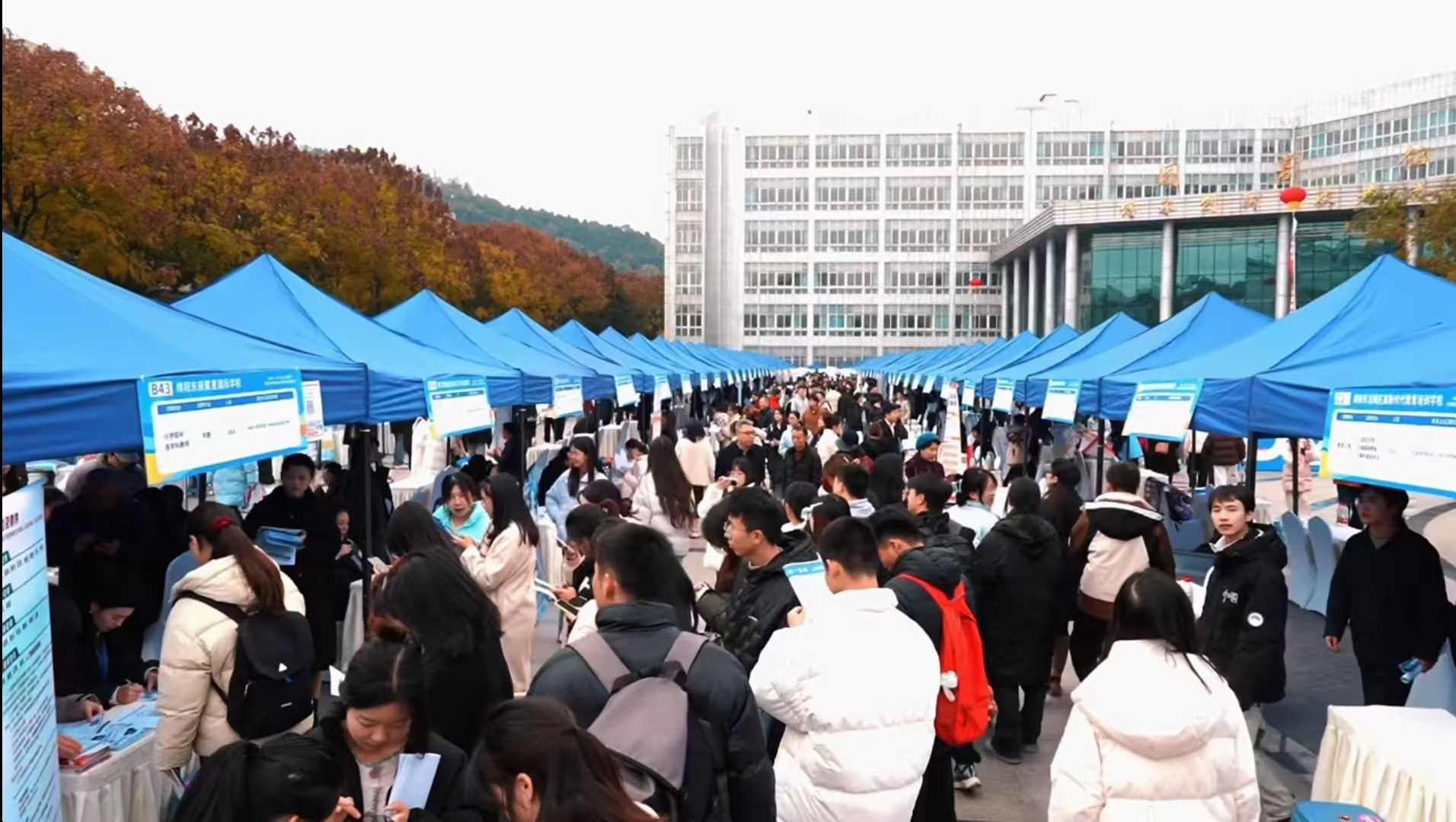 为全力促进学校2026届毕业生高质量就业,搭建更高效、更精准的校地人才对接平台,推动实现更加充分、更高质量、更持续的就业育人目标,12月4日,由四川省教育厅、四川省人力资源和社会保障厅主办,学校与省高校学生信息咨询与就业指导中心、省人才交流中心、绵阳市人力资源和社会保障局、绵阳市总工会共同承办的四川省“金秋启航”校园招聘暨绵阳师范学院2026届毕业生校园招聘会在高新校区文昌广场举行。本次招聘会汇聚358家科技企业及重点单位,提供9000余个岗位,初步达成就业意向280余人,取得扎实丰硕成果。