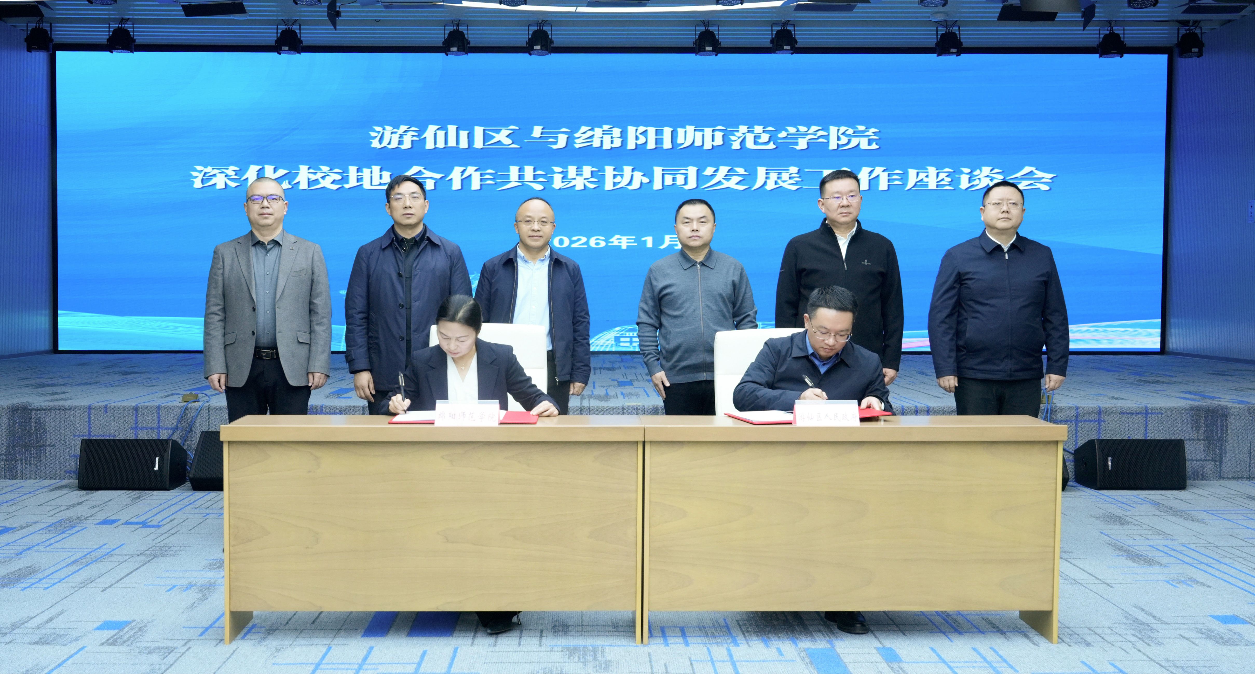 新年伊始,万象更新;校地携手,奋楫争先。1月7日上午,学校与游仙区人民政府在中国(绵阳)科技城数字经济产业园举行战略合作协议签约仪式并就深化校地合作共谋协同发展召开座谈会。游仙区委书记韩晓清,学校党委书记陈寒出席会议并讲话。学校党委副书记、校长李敏,党委常委、副校长蒋伟,游仙区委副书记、区长罗盛军,区委常委张明东、余华出席会议。座谈会由游仙区委常委、区政府常务副区长薛长灏主持。