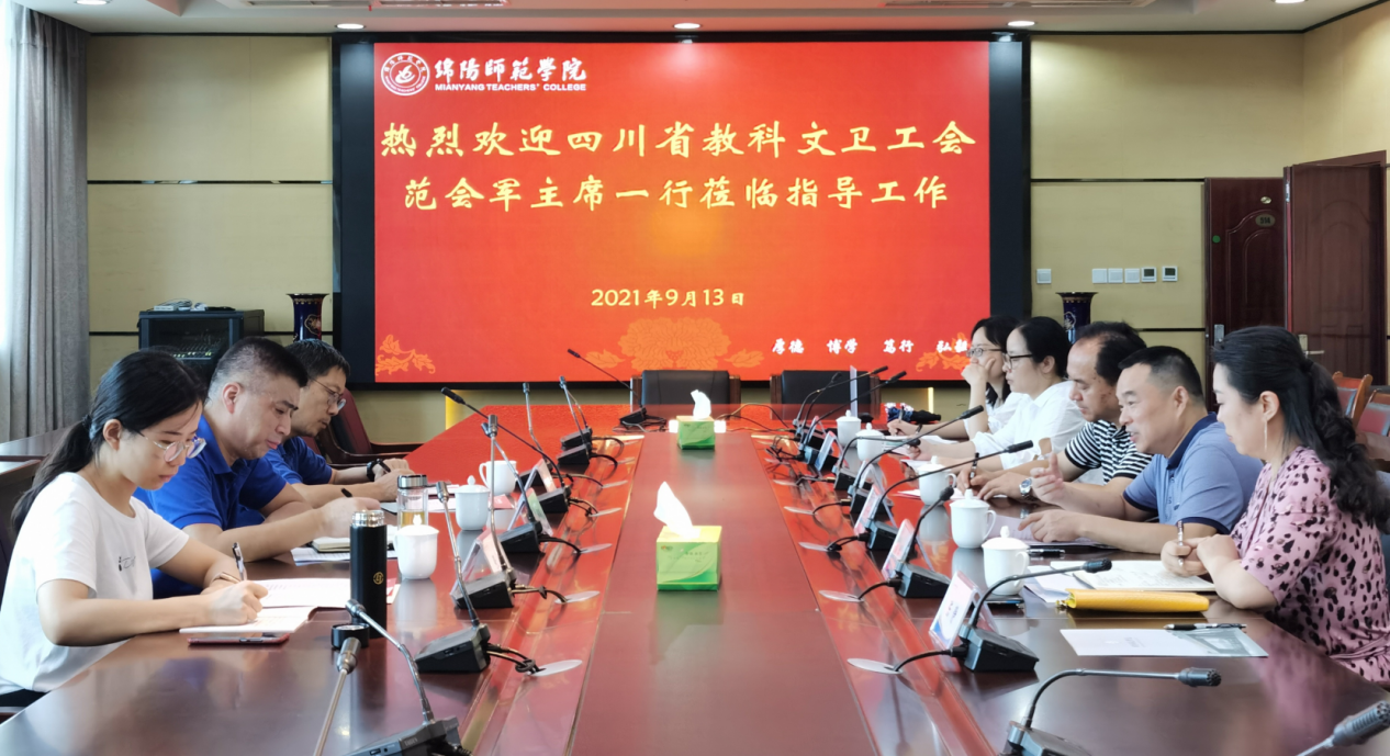 9月13日下午,省教科文卫工会主席、一级调研员范会军一行三人来我校了解并指导工会各项工作。学校党委常委、副校长、工会主席王力陪同并主持座谈会。